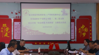 6月14日,beat365亚洲版官网科研处(产学研发展中心)党支部与贵州成黔矿产有限公司第一、二党支部联合开展“校企联建 共谋新篇”主题党日活动。beat365亚洲版官网党委委员、副校长刘衍民,科研处(产学研发展中心)党支部全体党员和贵州成黔矿产有限公司第一、二党支部全体党员参加活动。