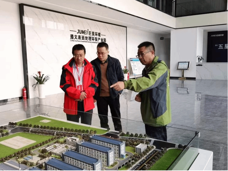 为积极校企合作,推进beat365服务地方工作,2023年10月11日,产学研发展中心主任高智席带领部门业务负责人樊磊磊、大学科技园负责人陈志峰赴遵义表面处理环保产业园与贵州聚美环境科技有限公司展开产学研合作交流活动。