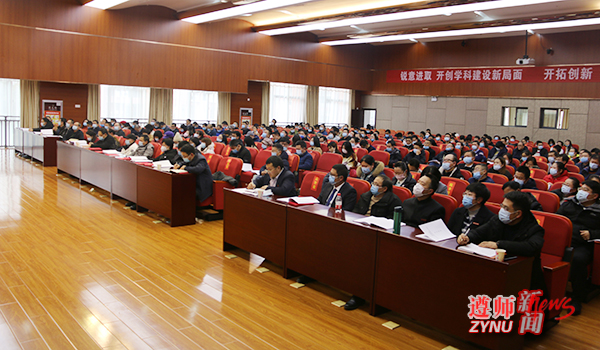 学校校长刘肇军在讲话中指出,要正确认识进入新发展阶段学科建设和科研工作的新机遇、新挑战、新要求,准确把握学科建设是推动学校高质量发展的根本支撑,科学研究是推动学校高质量发展的根本动力,将教师个人的科研工作有效融入学校建设发展中,不断推进新时代教育评价改革走向深入。他要求,下一步,要科学规划,找准定位,逐步打造具有遵师特色的学科群,构建多学科协调发展的学科体系。要统筹学科建设、学位点建设、师资队伍建设。要科学部署,加快推进人事分配制度改革。要积极向上向外,争取更多科研平台、项目和经费。要坚决扛起学科建设和科研工作的责任。