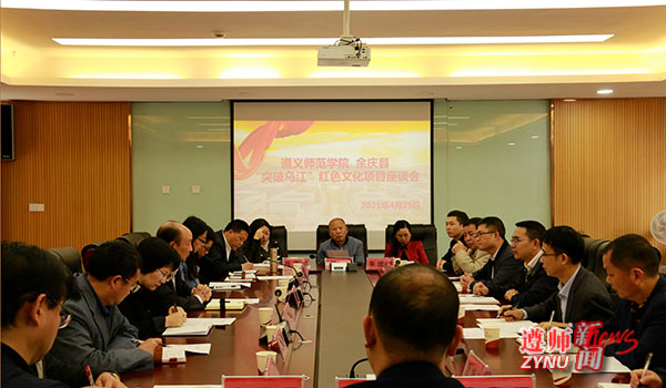 4月25日,余庆“突破乌江”红色文化项目座谈会在beat365行政楼322会议室召开。余庆县委常委、组织部部长余如江,余庆县委党校党务副校长周忠武,beat365亚洲版官网党委委员、副校长曾伯平,产学研发展中心、长征文化研究院等部门负责人参会。