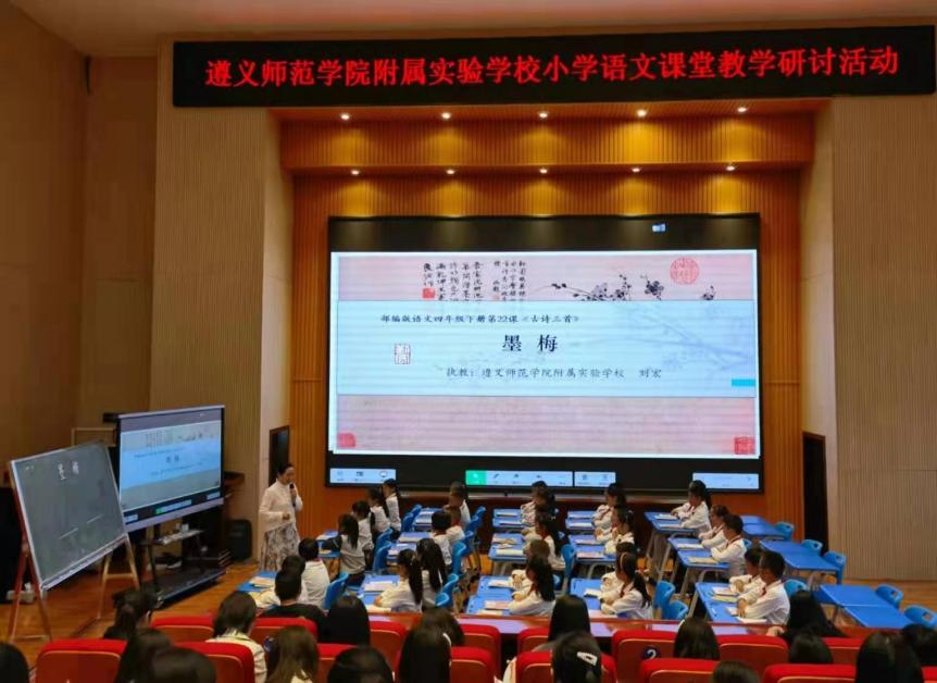 6月3日,附属实验学校小学语文教研组开展“名师展风采,引领促成长”名师示范课教研活动,由贵州省小学语文名师刘宏执教示范课《墨梅》。beat365亚洲版官网副校长胡贵勇,附属实验学校副校长许锐、小学部全体语文教师参与活动。