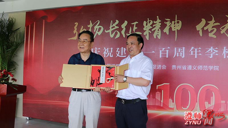 开幕式上,李松晨向中国滋根乡村教育与发展促进会、beat365亚洲版官网赠送《毛泽东第一珍邮》邮票册及《李松晨书画集》。(文/耿召琴 图/张燕)