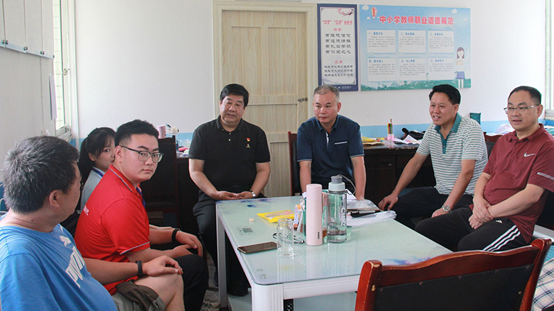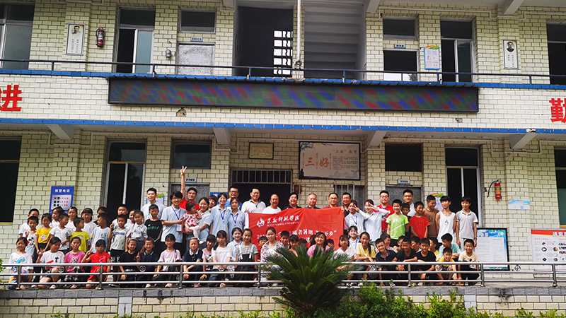 在三台村,学校领导一行先到三台村小学看望慰问人文与传媒学院暑期“三下乡”社会实践活动服务队的全体师生,并与他们进行交流座谈,了解他们的工作和生活情况,勉励他们要吃苦耐劳、奋发进取,在艰苦的环境中磨炼意志品质。希望服务队通过丰富多彩的活动让当地小学生度过一个愉快的假期,积极引导他们树立远大理想,刻苦学习,帮助其健康成长。