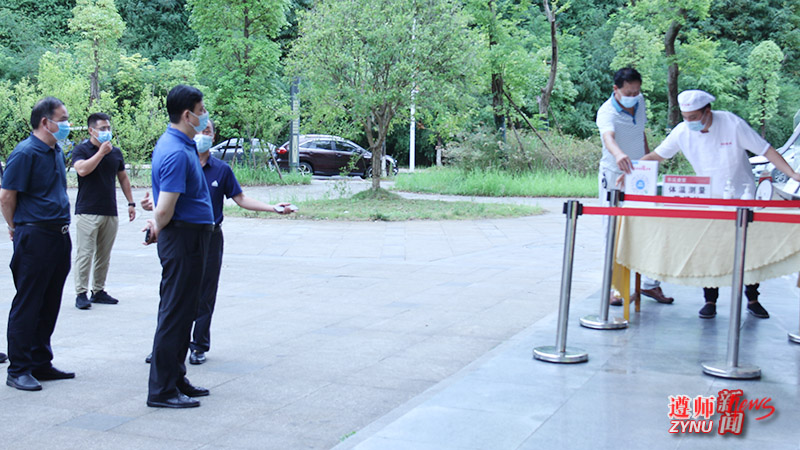 学校领导一行到北门、图书馆、食堂、宿舍检查了疫情防控工作情况,并提出了进一步要求。(文/饶佳莉 图/蔡盛兰)
