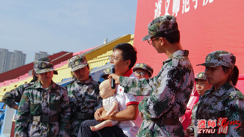 为加强学生入学教育,增强学生安全意识,9月6日上午,学校在西区运动场开展2021级新生生命健康安全教育应急救护培训。中国红十字总会救护培训师、省红十字会救护培训指导中心高级讲师龚诗伦担任主讲。