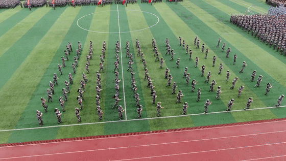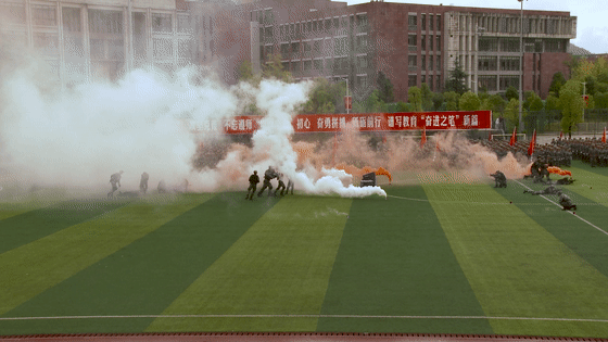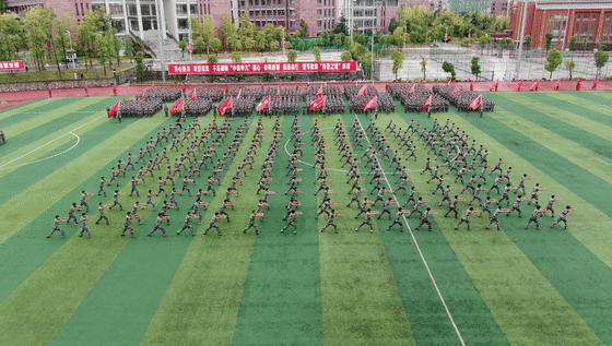 今年是中国共产党成立一百周年,数字方阵摆出“请党放心”“强国有我”“1921”“2021”等字样,全场合唱《没有共产党就没有新中国》,致敬伟大的中国共产党,表明遵师青年坚定信念跟党走、肩负使命献青春的决心和信心。