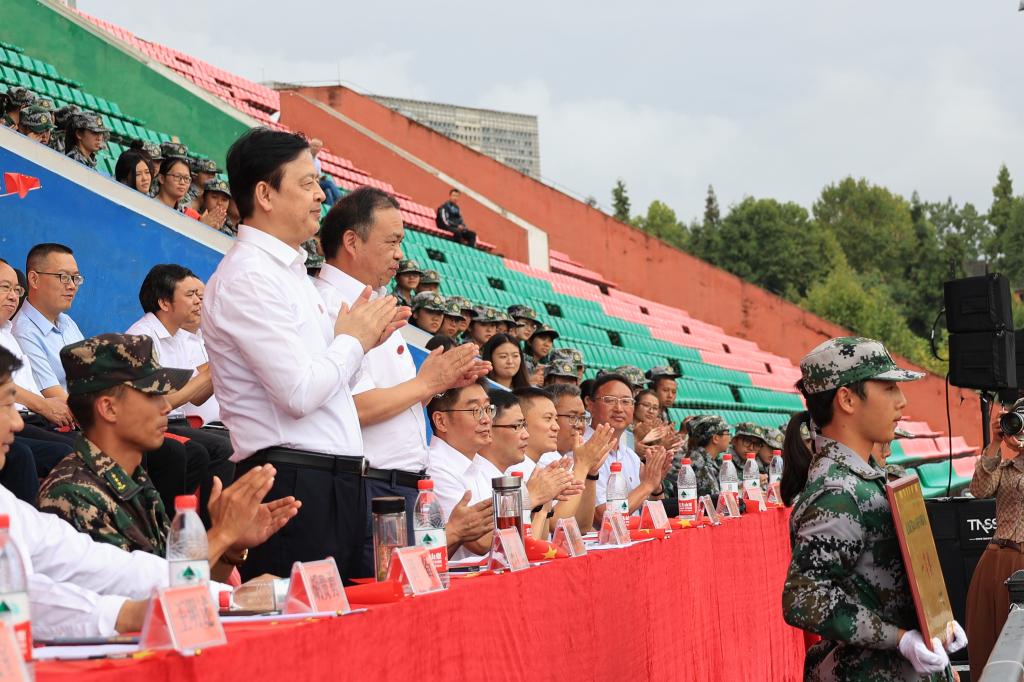 胡贵勇宣读了军训考核个人、集体获奖名单。其中,邓斯元等98人获“优秀学员”称号,生物与农业科技学院、教师教育学院获一等奖,资源与环境学院、外国语学院、工学院获二等奖,管理学院、音乐与舞蹈学院、信息工程学院、马克思主义学院获三等奖。参会领导为获奖代表颁奖。