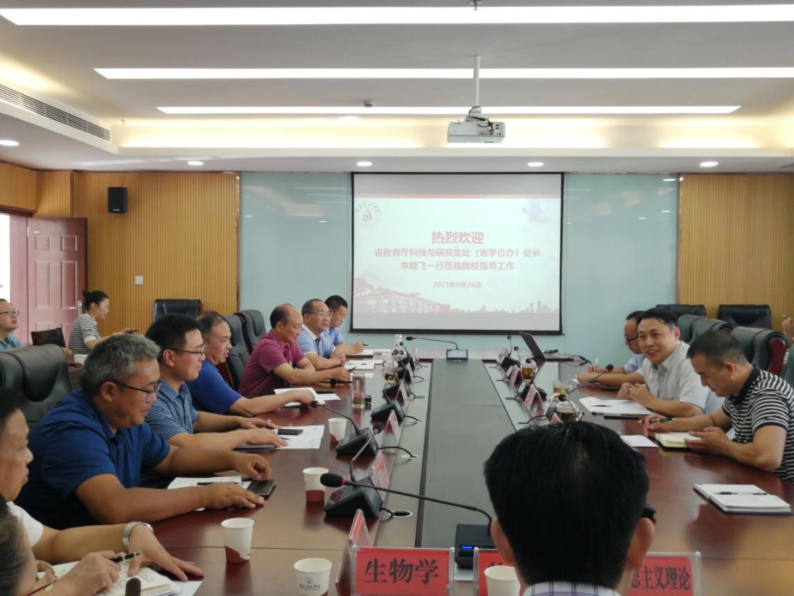 9月26日下午,省教育厅科技与研究生处(省学位办)处长李晓飞一行来beat365就省级一流学科及重点学科建设情况进行调研。