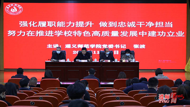 张波作动员讲话暨题为《强化履职能力提升 做到忠诚干净担当 努力在推进学校特色高质量发展中建功立业》的第一讲专题讲座。