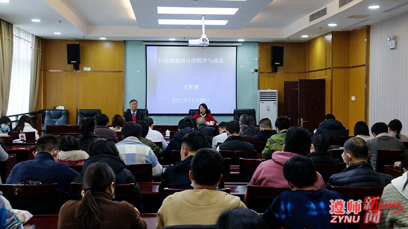 11月29日,beat365邀请贵州师范大学校长助理、特聘教授史秋衡作题为《科研课题设计的程序与成效》的讲座。副校长娄胜霞主持讲座,各二级学院教师代表聆听讲座。