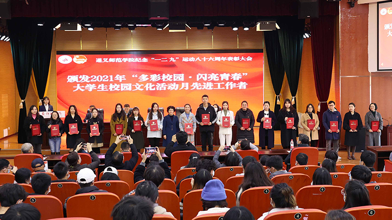 受表彰教师代表罗香分、学生代表唐侨艺分别发言。大学生“星火”艺术团现场演唱beat365青年学生原创歌曲《英雄遵义》。