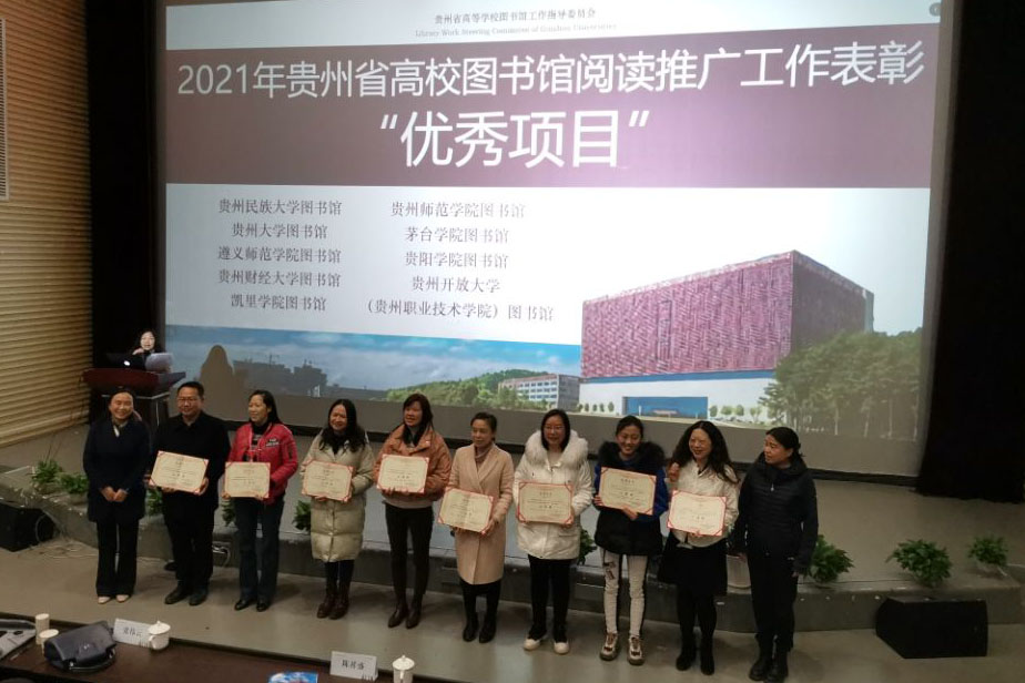 12月7日,贵州省高校图书馆年会在贵州大学举行,对2021年贵州省高校图书馆阅读推广工作获奖单位进行了表彰,beat365亚洲版官网图书馆荣获贵州省高校图书馆2021年“4·23世界读书日”系列活动“优秀组织奖”三等奖,选送的“红色文化育人•地方文化育人”阅读推广项目荣获“优秀项目”二等奖。