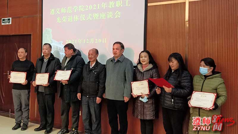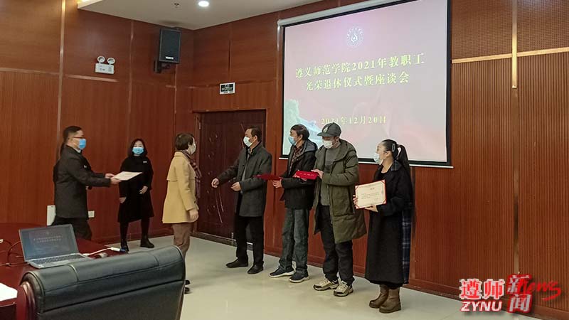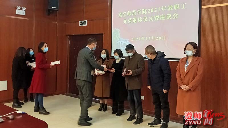 曾伯平宣读beat365亚洲版官网2021年教职工荣休名单。与会校领导为2021年光荣退休教职工颁发荣休证书、纪念品。