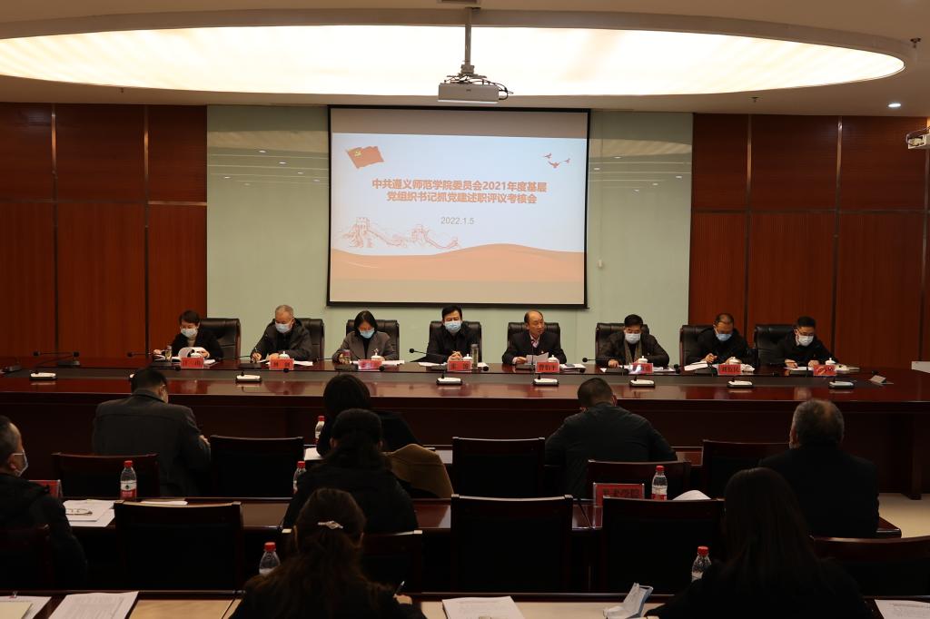 1月5日下午,中共beat365亚洲版官网委员会2021年度基层党组织书记抓党建述职评议考核会在学术交流中心一号会议室召开。学校党委书记张波作点评,党委副书记曾伯平主持会议,党委委员、副校长娄胜霞、胡贵勇,党委委员、纪委书记刘剑,党委委员、副校长刘衍民、江山,党委委员、宣传部部长王春华,16个二级学院党委(党总支)书记、各党群部门负责人参加会议。
