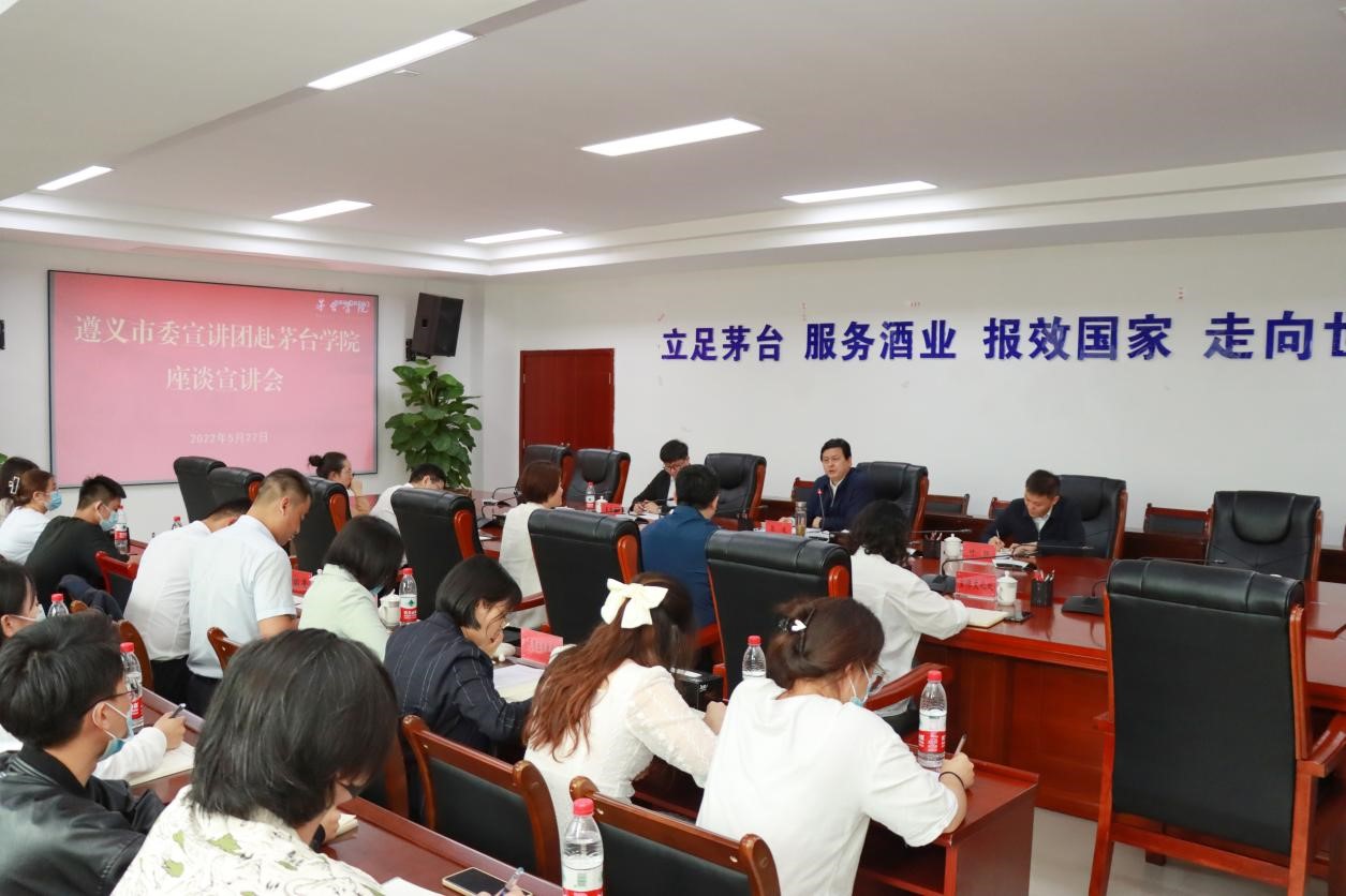 为积极响应遵义市委宣传部号召,深入学习贯彻省第十三次党代会精神,5月27日,遵义市委宣讲团成员、beat365亚洲版官网党委书记张波一行赴茅台学院,开展省第十三次党代会精神宣讲活动。茅台学院党委副书记、纪委书记王维欣,党委委员、副校长程庆,中层干部,师生代表,beat365亚洲版官网党政办公室负责同志与工作人员参加宣讲会和学习交流。
