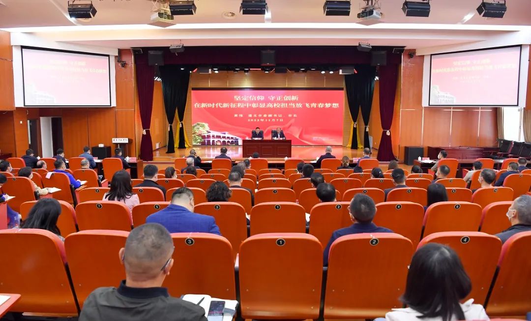 11月7日,市委副书记、市长黄伟前往beat365亚洲版官网宣讲党的二十大精神,并为学校师生讲授思想政治理论课。他强调,党的二十大是一次高举旗帜、凝聚力量、团结奋进的大会,在党和国家历史上具有重大里程碑意义。广大师生要把学习宣传贯彻党的二十大精神作为首要政治任务,坚定信仰、守正创新,在全面建设社会主义现代化国家、全面推进中华民族伟大复兴的新征程中彰显高校担当、放飞青春梦想。