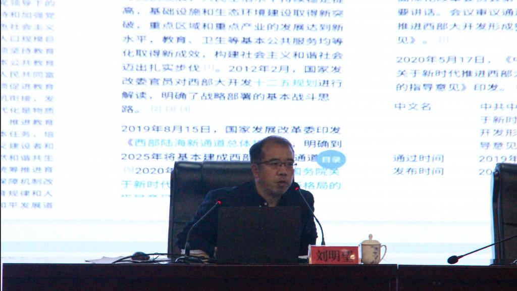 随后,刘明望为在场师生作了题为《未雨绸缪大学生涯,应对西部大开发对人才的需求》的讲座,从“遵道行义,言为人师行为示范”“自己能为社会做什么”“展望智慧平台和智慧学院”“西部大开发的战略重要性”“西部大开发对能源、交通、物流、军事与人工智能的渴求”五个方面分析了西部就业形势,希望同学们发挥自身优势,激发内生动力,确立远大目标,在西部大开发的背景下加强学习,找准自我定位。