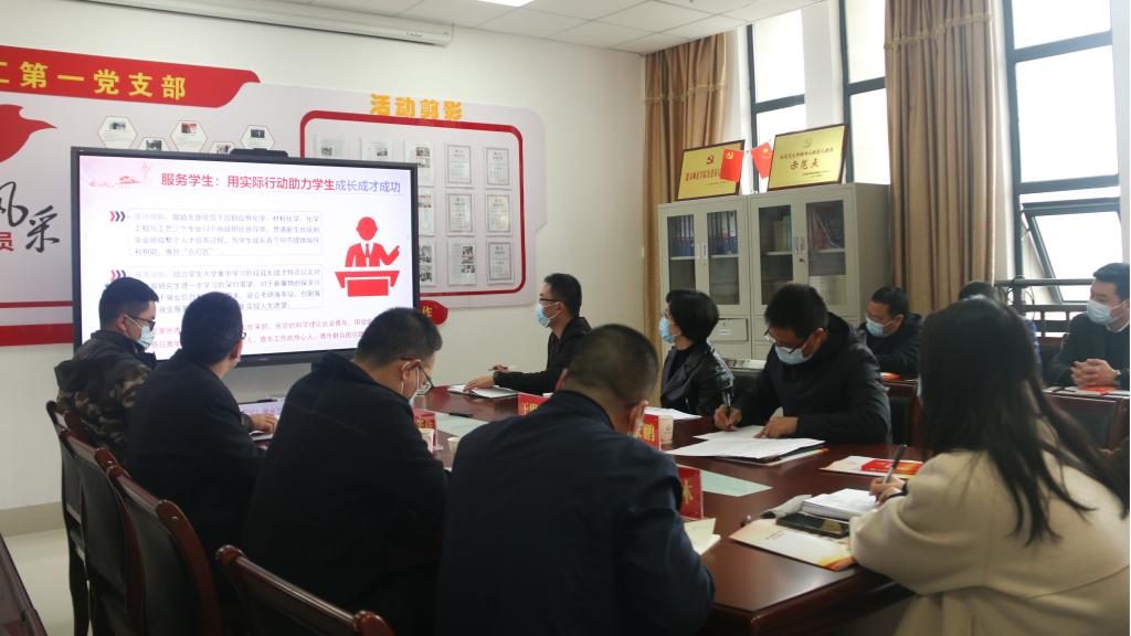 化学化工学院教工第一党支部书记王光伟围绕党支部建设目标任务、当前工作及工作计划三个方面作了汇报。今后将以“创新、合作、敬业”的建设工作思路,强化内涵式发展,推进服务学生、服务教师、服务地方、服务学校高质量发展工作,贯彻落实党的二十大精神,为地方高质量发展贡献积极力量。