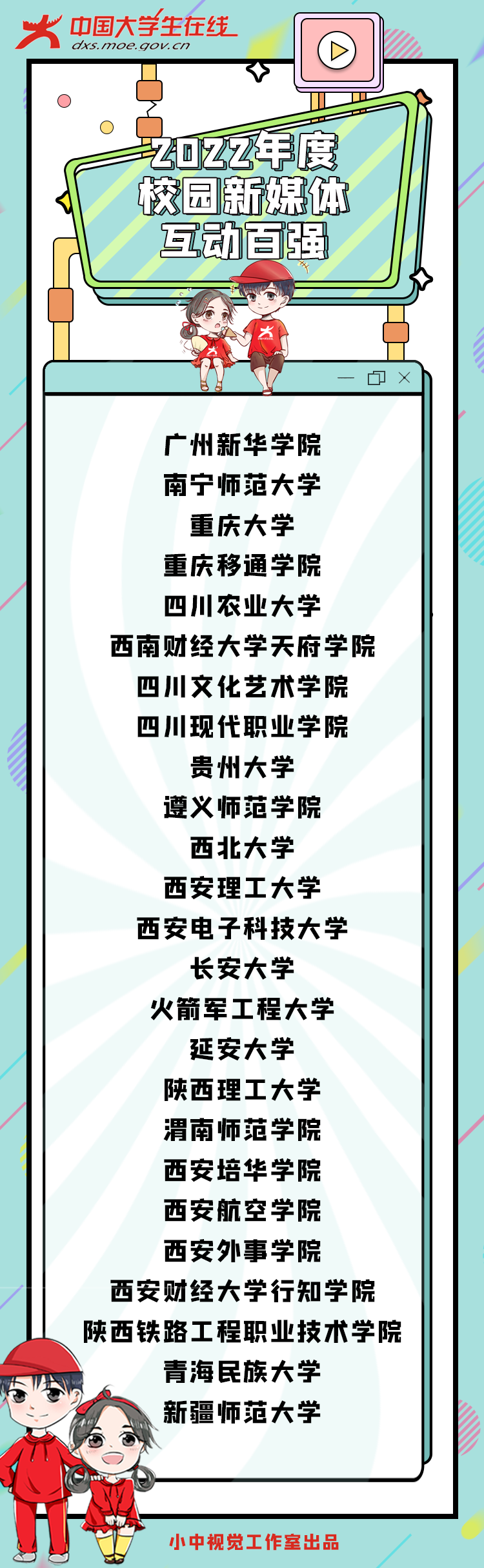 12月23日,教育部中国大学生在线公布2022年度校园新媒体表彰名单,beat365亚洲版官网入选“校园新媒体互动百强”(贵州仅2所高校入选)。