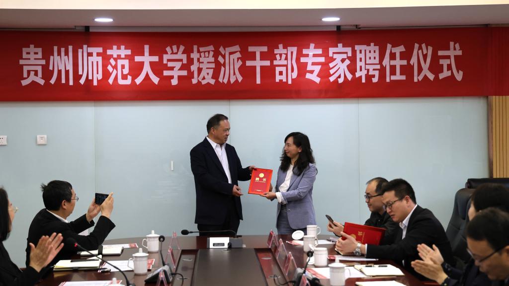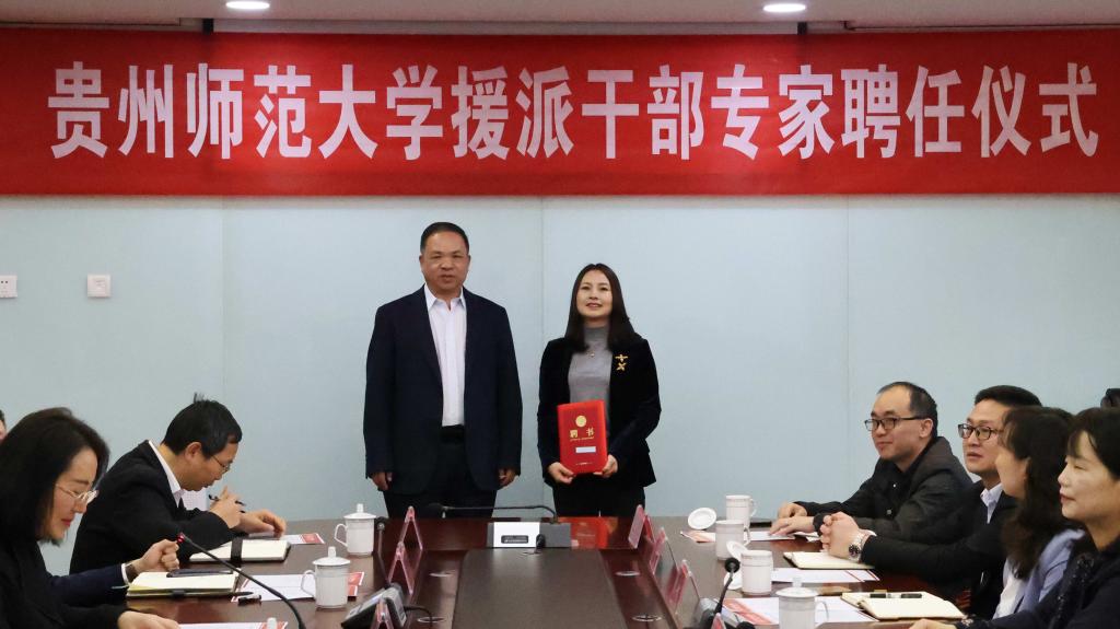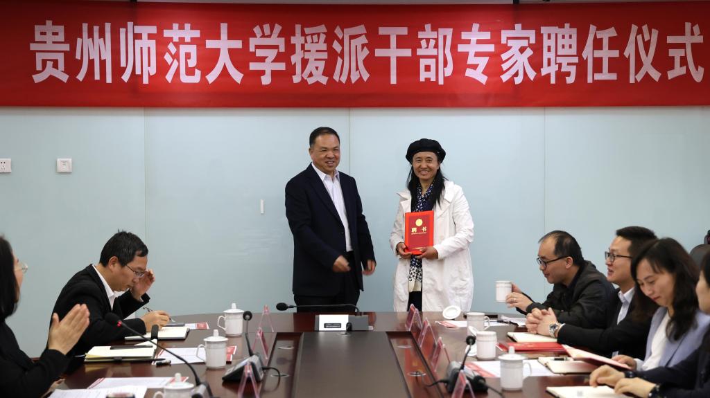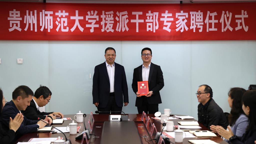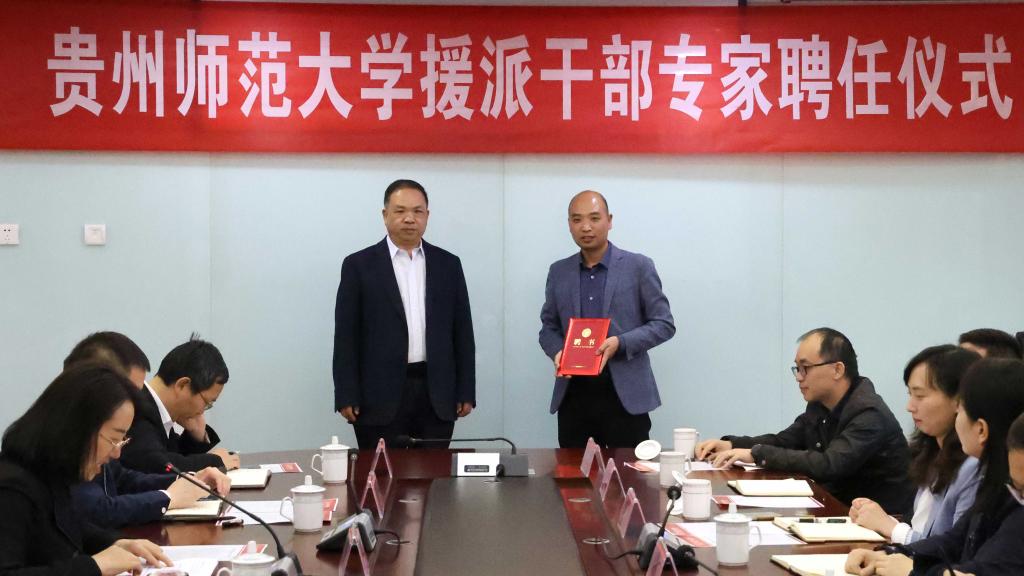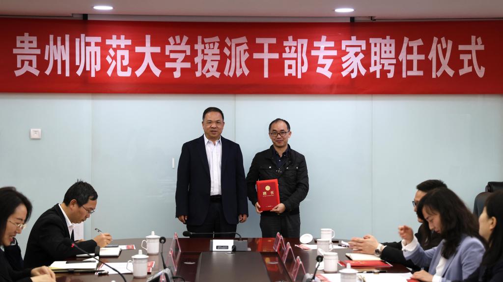 刘肇军致辞,对贵州师范大学援派到beat365就任的干部专家表示热烈欢迎,并为援派干部专家颁发聘书。他指出,贵州师范大学援派干部专家到beat365就任,充分体现了贵州师范大学党委极高的政治站位、严谨的工作作风,充分展现了贵州师范大学干部专家过硬的政治素养、深厚的教育情怀,是对beat365师生的极大支持与鼓舞。beat365亚洲版官网将切实做好服务保障,为援派干部专家提供良好工作、生活环境。希望各位援派干部专家把握机会,在遵师得到思想淬炼、政治历练、实践锻炼,多结硕果,共同助推遵师特色高质量发展和全省教育事业高质量发展。