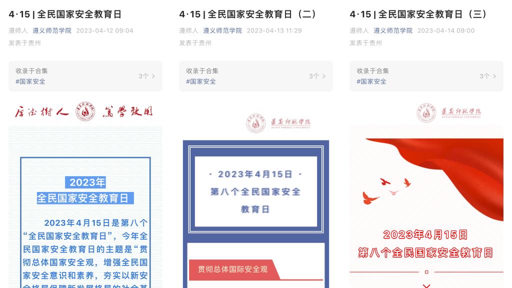 积极实施,全面落实。按照学校制定的方案,在学校党委的指导下,组织部、宣传部、学生工作部、团委及其他二级单位在线上线下积极行动,认真落实各项任务。组织大学生“同上一堂国家安全课”;征集以国家安全为主题、融合红色文化元素的文创作品;通过学校微信公众号、遵师青年、遵师学生在线等新媒体,推动主题宣传内容;通过主题班会、主题团课收听收看教育视频,学习国家安全和保密法律法规。截止到4月15日,师生集中学习36场次、举办讲座1场,投放电子屏1块,覆盖学生1.4万余人,发布推文24期、线上微团课视频2条,内容涵盖总体国家安全观、典型事例、反面案例、知识测评等。后续还将持续把国家安全教育纳入党委理论中心组学习、“三会一课”、教职工政治理论学习内容,营造广大师生关心、关注国家安全的良好氛围,在参与中提高国家安全意识,增强风险防范意识。