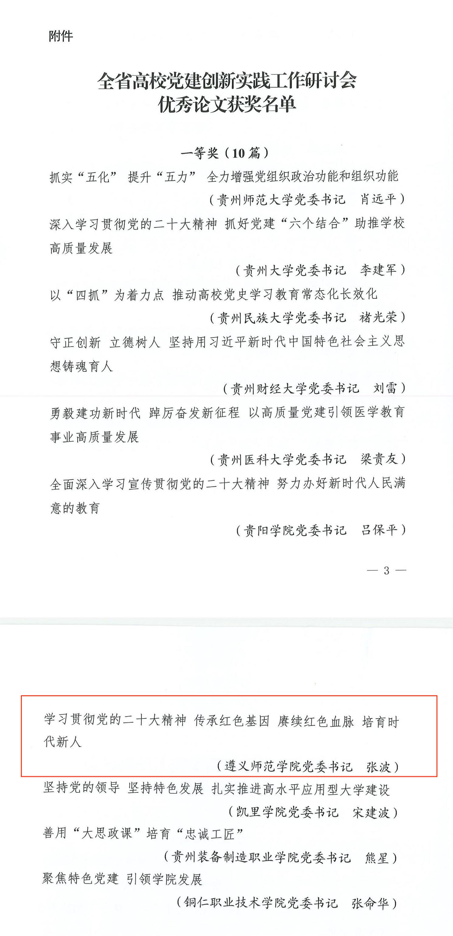 近日,省委教育工委、省党建研究会公布全省高校党建创新实践工作优秀论文名单,beat365党委书记张波论文《学习贯彻党的二十大精神 传承红色基因 赓续红色血脉 培育时代新人》荣获一等奖。