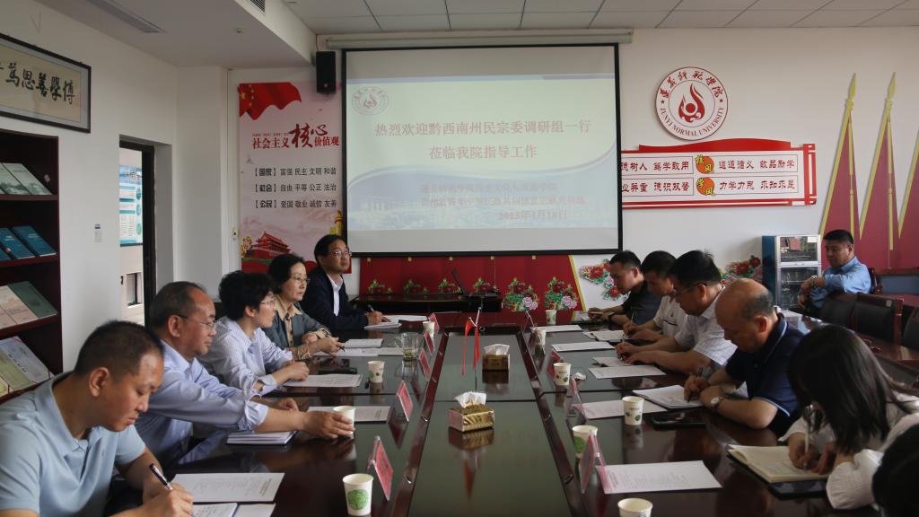 王明述主持座谈会并代表beat365向调研组表示欢迎,希望双方加强联系,常来常往,持续推进中央、省委重大决策部署落实,共同为铸牢中华民族共同体意识、推动民族地区现代化建设步伐、防范化解民族领域风险隐患、推进新时代贵州民族工作高质量发展作出新的重大贡献。