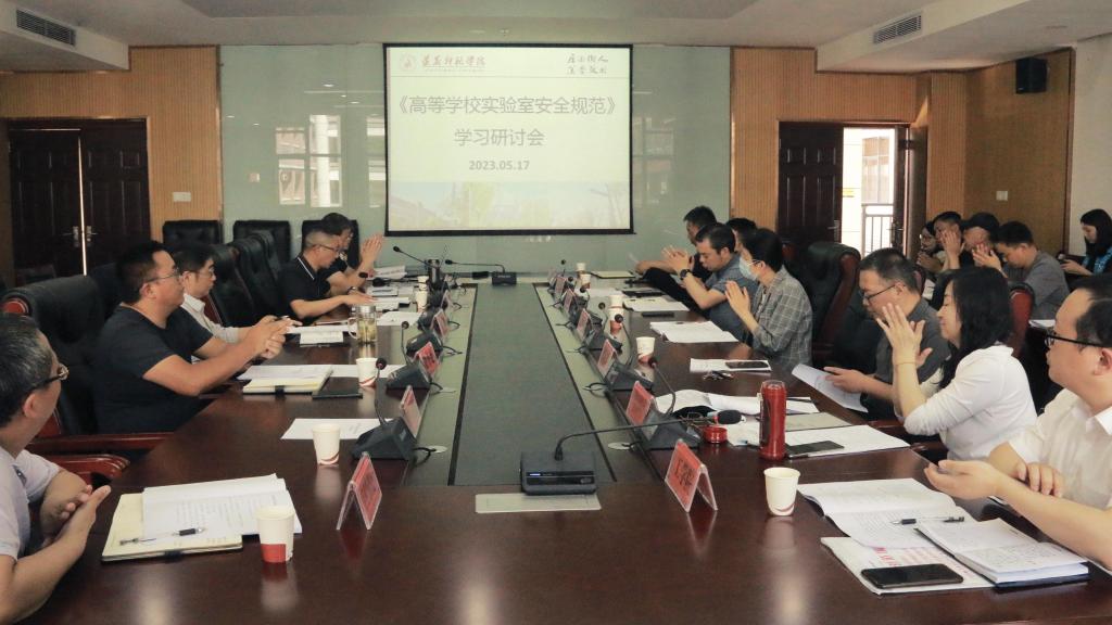 为深入贯彻教育部《高等学校实验室安全规范》有关要求,进一步加强学校实验室安全工作,提升学校实验室管理水平,5月17日下午,学校在行政楼322会议室召开《高等学校实验室安全规范》学习研讨会。学校副校长、实验室安全工作领导小组常务副组长张鹏,教务处、科研处、后勤管理处、保卫处主要负责人,相关二级学院院长、分管实验室工作副院长、实验室主任及实验室管理人员参加会议。
