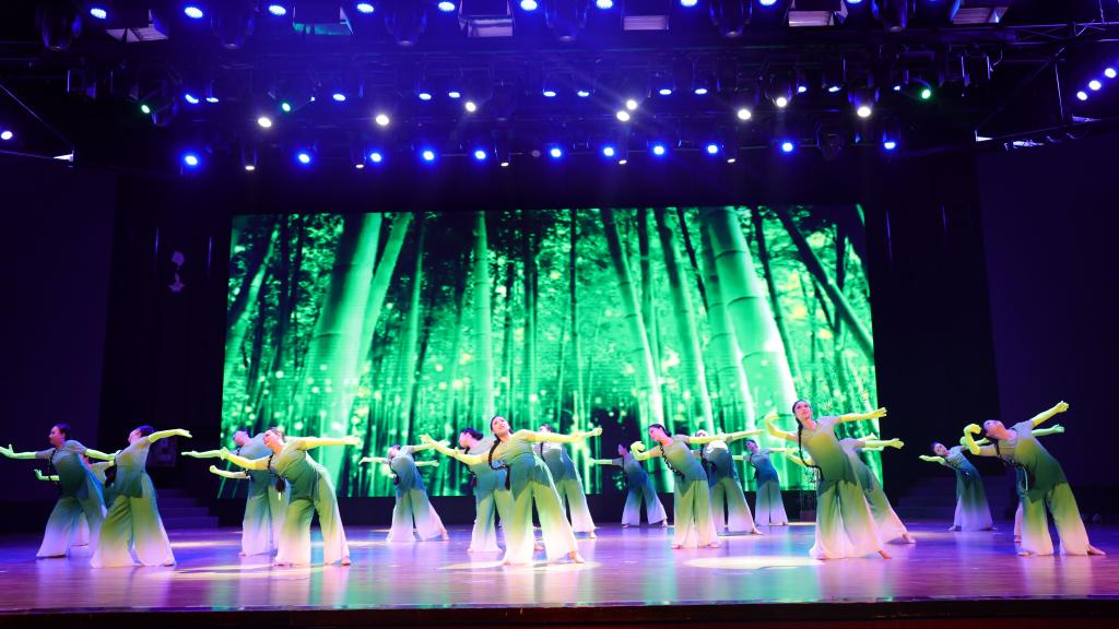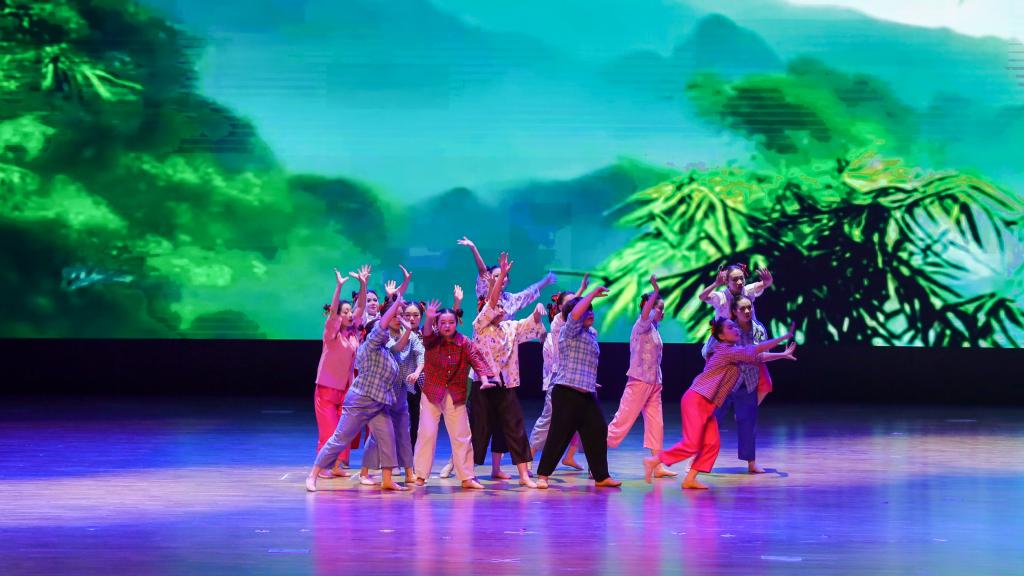 演出中,同学们舞姿飞扬、演绎生动,充分展现了遵师青年活力四射、青春洋溢的精神风貌,舞蹈完美结合了背景视频和音乐,尽显盎然绿意。奋力破土而出、欣欣向荣的竹笋,表现出驻村第一书记带领群众脱贫致富的信心和决心;演员们拿着一个个精美的手编竹篮,仿佛编织出了一条条致富新路。台上欢歌笑语,台下掌声阵阵,现场气氛热烈。