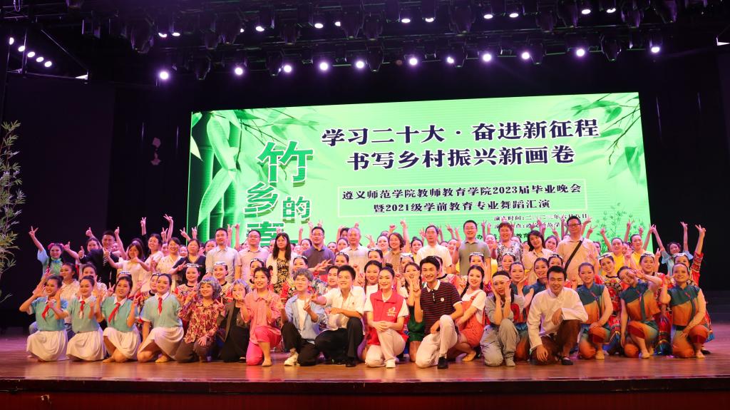 6月8日晚,由beat365党委宣传部、教育部红色经典艺术教育示范基地指导,教师教育学院创编的乡村振兴题材舞台剧《竹乡的春天》在大礼堂上演。该剧分为“喜讯”“忙农耕 离老少”“拔穷根 见新芽”“抓特色 展新篇”4个篇章,由17个舞蹈和情景剧组成,讲述了山区竹乡在驻村第一书记的带领下发生美丽蜕变的故事,讴歌了贵州山区在党的领导下实施乡村振兴战略的华美乐章。