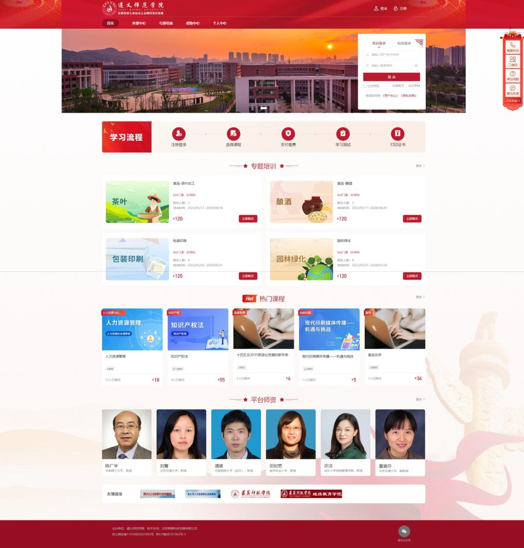 为贯彻落实《贵州省专业技术人员继续教育基地管理办法(试行)》文件要求,经省人社厅、市人社局批准,由beat365亚洲版官网继续教育学院牵头建设的“省级专业技术人员继续教育学习平台”(https://zynczj.webtrn.cn/cms/)于6月13日投入试运行。