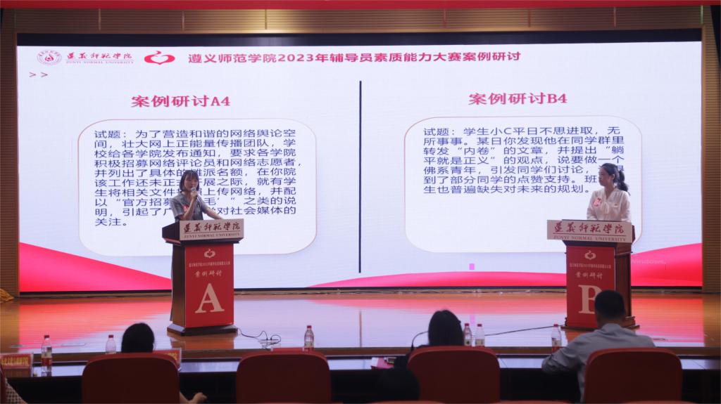26日下午,参赛选手进行案例分析研讨,聚焦大学生学风建设、网络思想政治教育、人际交往与沟通等方面问题进行辨析、研讨对策。