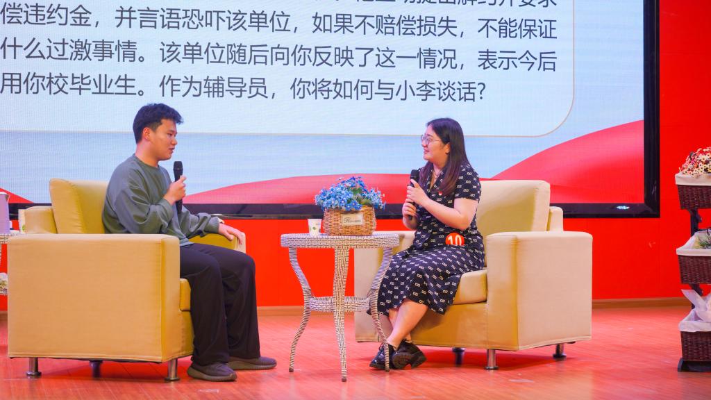 下午,12名参赛选手围绕如何引导学生树立正确的理想信念、对经济困难的学生进行思想帮扶、预防网络舆情危机等问题进行谈心谈话比赛,真实展现与学生面对面交流的情景,充分展现辅导员个人魅力及开展学生思想工作的艺术方法。