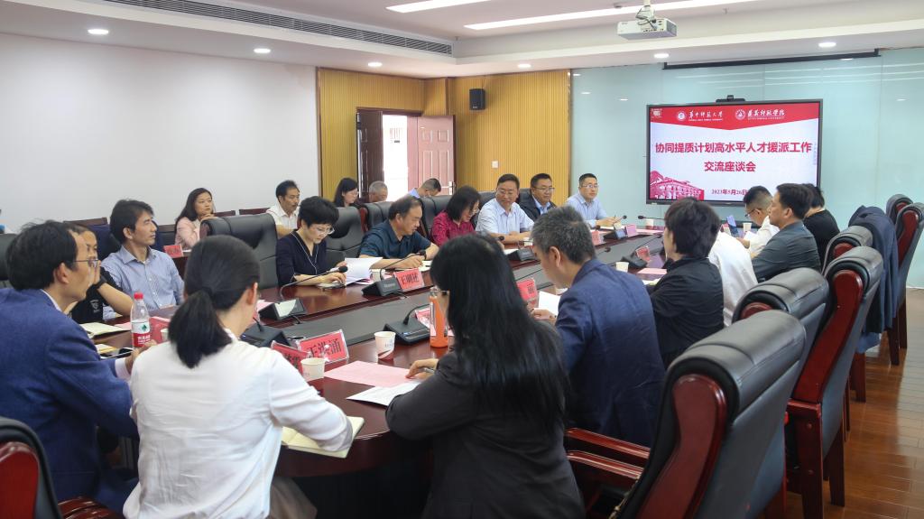 5月26日,华中师范大学副校长任友洲率队到beat365就高水平人才援派工作进行交流,并与beat365校长刘肇军、副校长娄胜霞等展开座谈。