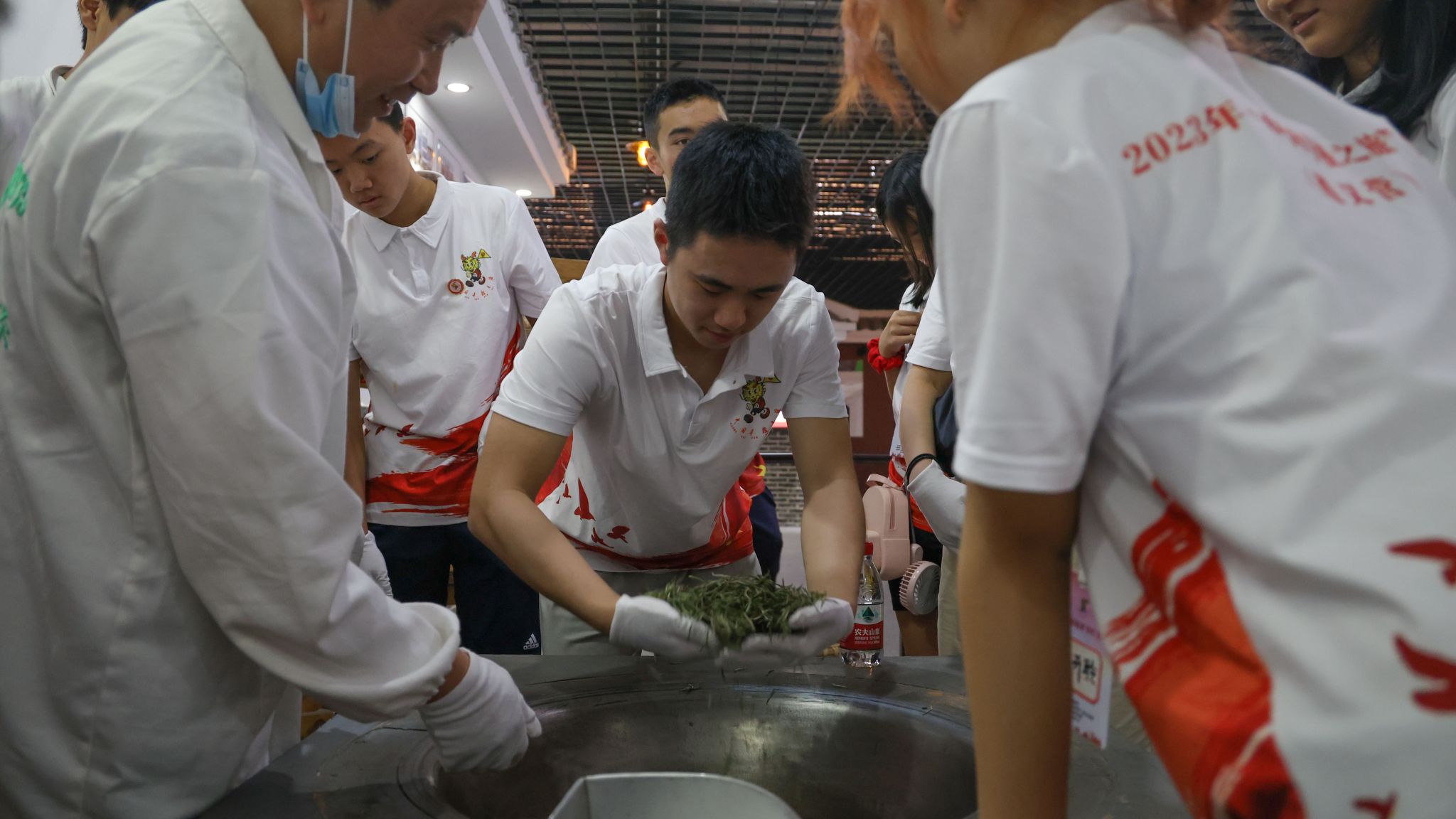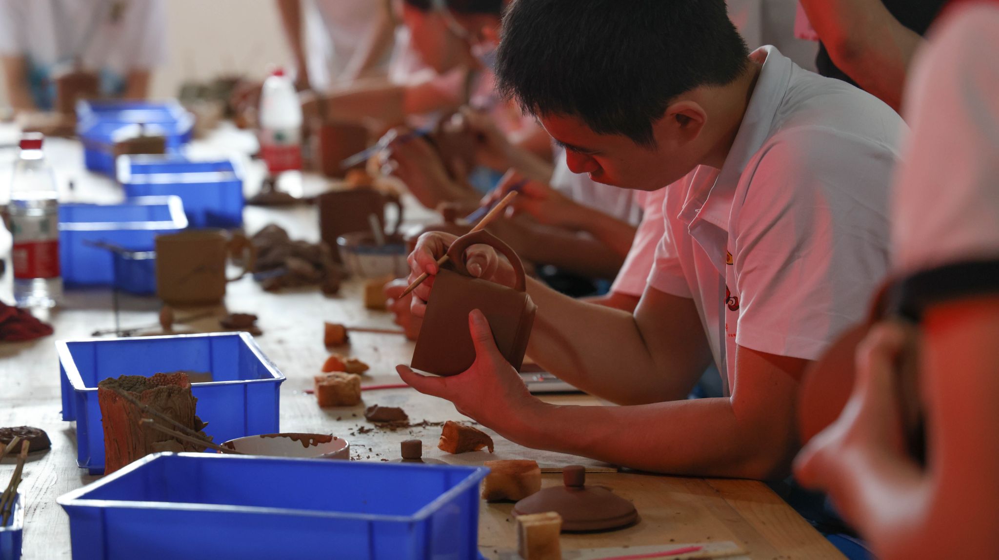 营员们还深入遵义各地研学,深刻感受到了浓浓的“乡愁”。在余庆县大乌江镇,营员们体验了“一双手,一把泥,捏出世间百牛情”的泥牛黄非遗文化。在湄潭县茶工业博物馆、茶海之心,营员们在观摩了茶叶生产工序后,也纷纷戴上手套,翻炒茶叶,给新鲜采摘的茶叶杀青;在浙大西迁历史陈列馆,营员们仔细聆听了“文军西迁”的故事。在遵义会议纪念馆,营员们学习了长征精神、遵义会议精神,感叹革命先辈的初心与使命;在世界文化遗产海龙屯遗迹,营员们赞叹山川的磅礴;在播州区,营员们走进大发渠,了解“时代楷模”黄大发讲述“绝壁凿天渠”的事迹;在花茂村,营员们学习了陶艺制作。在仁怀市茅台镇,营员们参观了中国酒文化城,观摩了白酒生产过程。