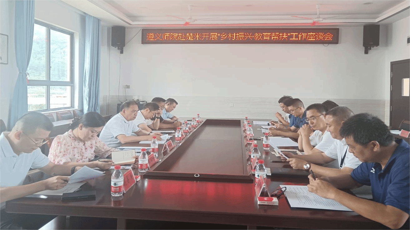 为认真落实习近平总书记关于实施乡村振兴战略的重要论述和全省驻村帮扶工作总结表彰暨动员部署会议精神,根据桐梓县楚米镇关于帮助辖区内学校教育高质量发展助力乡村振兴有关事项的来函,7月12日,校长刘肇军、副校长张鹏率组织部、教务处、教师教育学院、继续教育学院、附属实验学校主要负责人,赴楚米镇看望驻村第一书记,并召开“乡村振兴·教育帮扶”工作座谈会。桐梓县委教育工委专职副书记袁细强、楚米镇党委书记王元康、镇长张文彬等有关负责同志陪同。