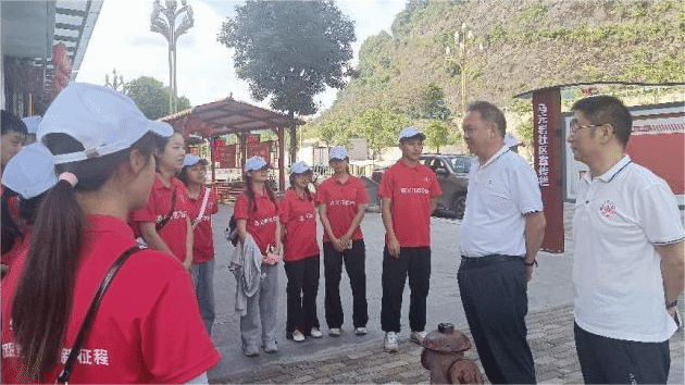 在参观过程中,巧遇在马元岩社区开展暑期“三下乡”社会实践活动的资源与环境学院师生。刘肇军、张鹏驻足与师生亲切交流,详细了解同学们社会实践开展情况,叮嘱同学们要珍惜和利用好社会实践机会,加强实践学习和锻炼,深入了解基层社情民意,牢固树立为民服务意识,努力掌握知识本领,将来回馈社会、报效祖国。
