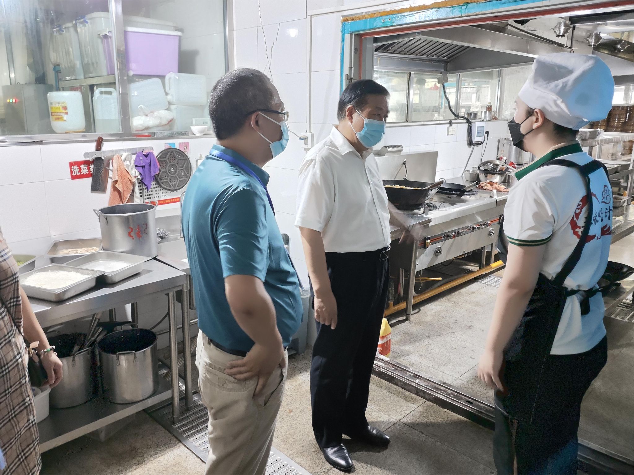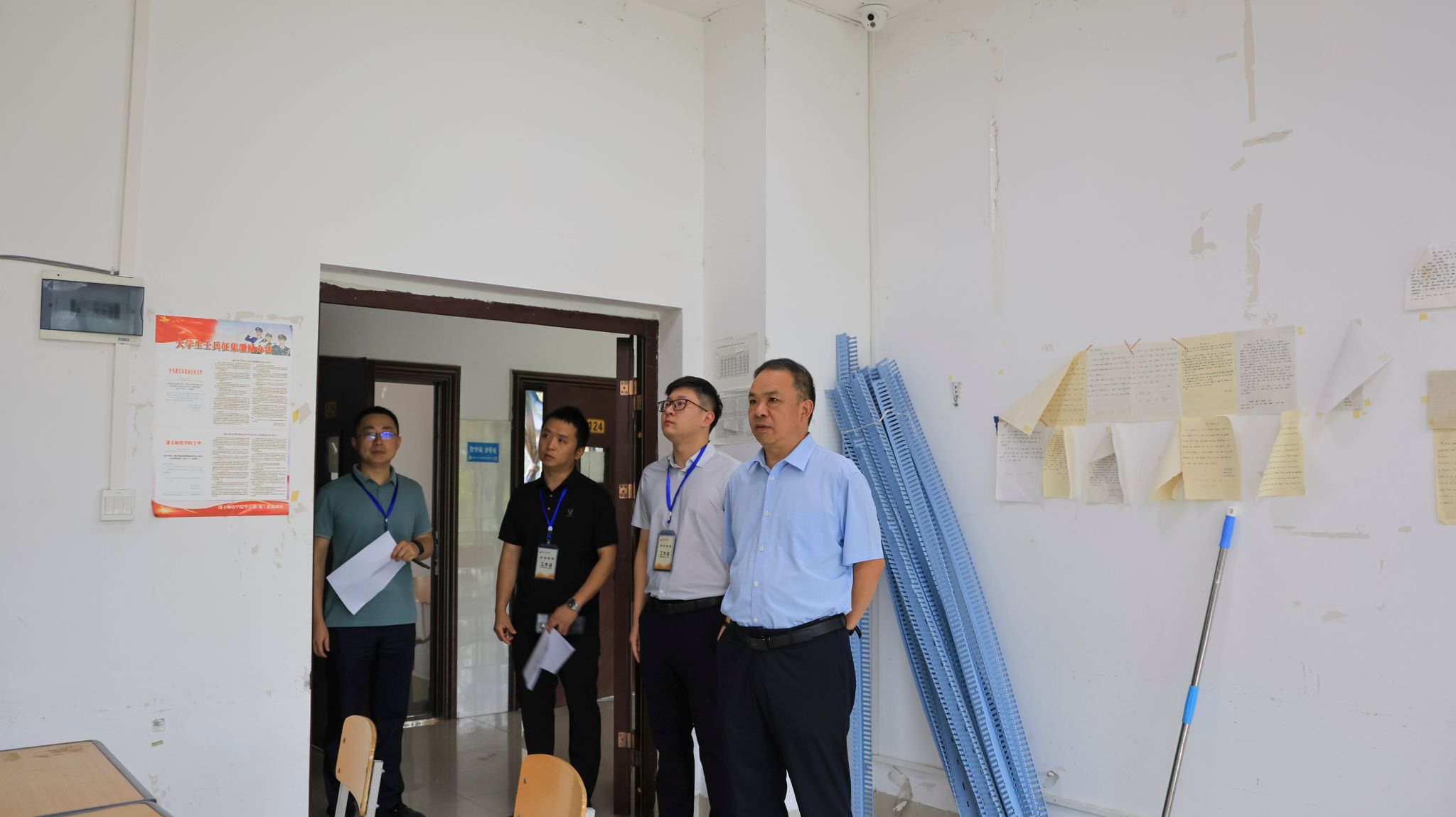 在现场检查中,校领导走访了各二级单位办公场所,查看了行政楼、学生中心、后勤服务大楼、教学楼、实验楼、体育馆、图书馆、食堂等区域,检查了新学期工作、教学情况。