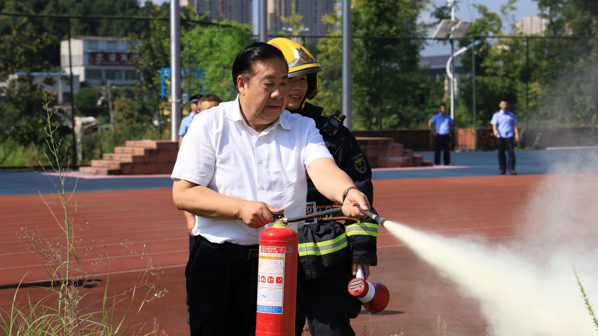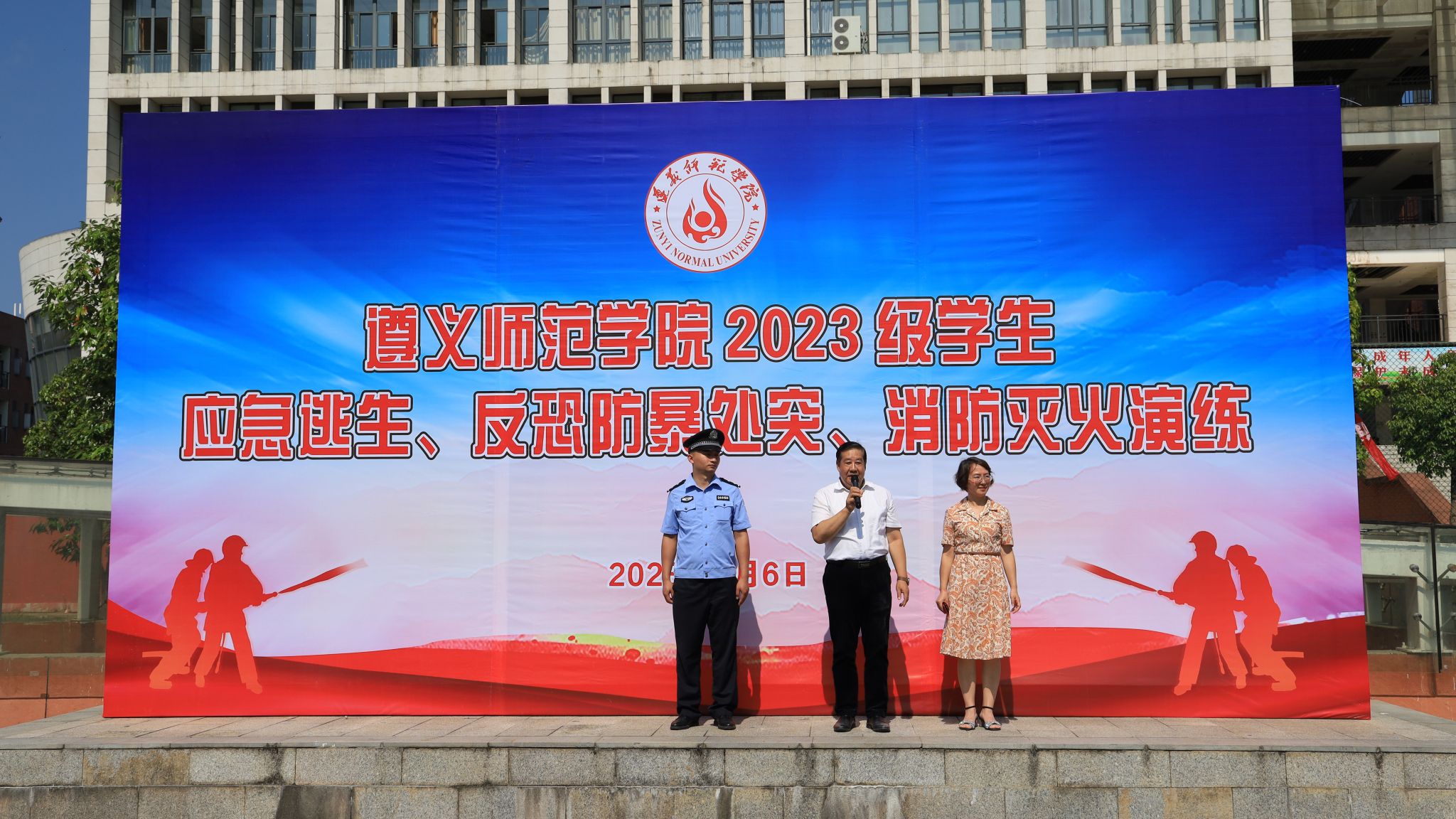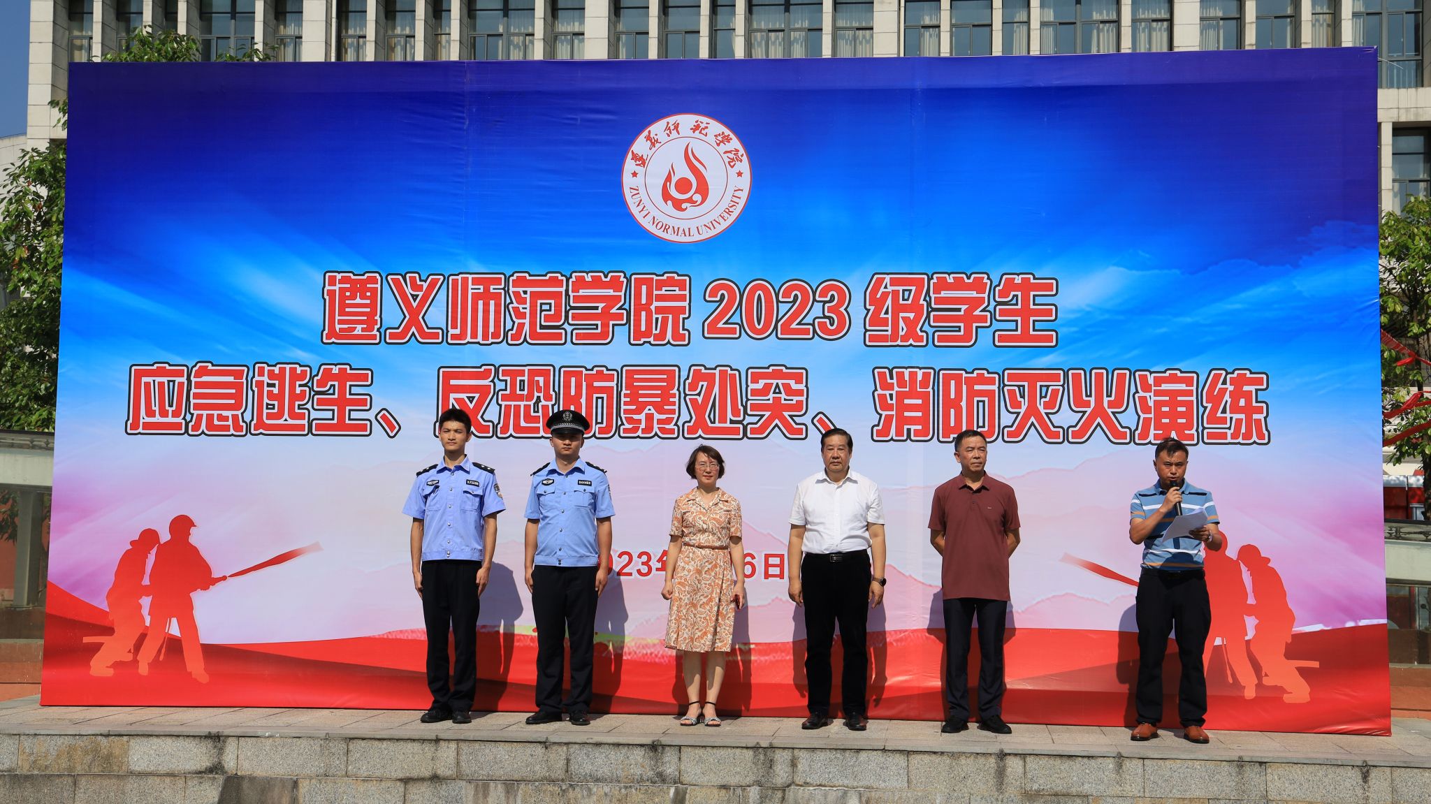 为提升学校安全管理水平,进一步强化学生安全意识,提高防范自救能力,9月6日上午,学校开展2023级学生应急逃生、反恐防暴处突、消防灭火演练。市公安局新蒲分局、新蒲新区消防大队相关人员,学校副校长胡贵勇、江山,各相关职能部门、各二级学院负责人及2023级新生参加演练。