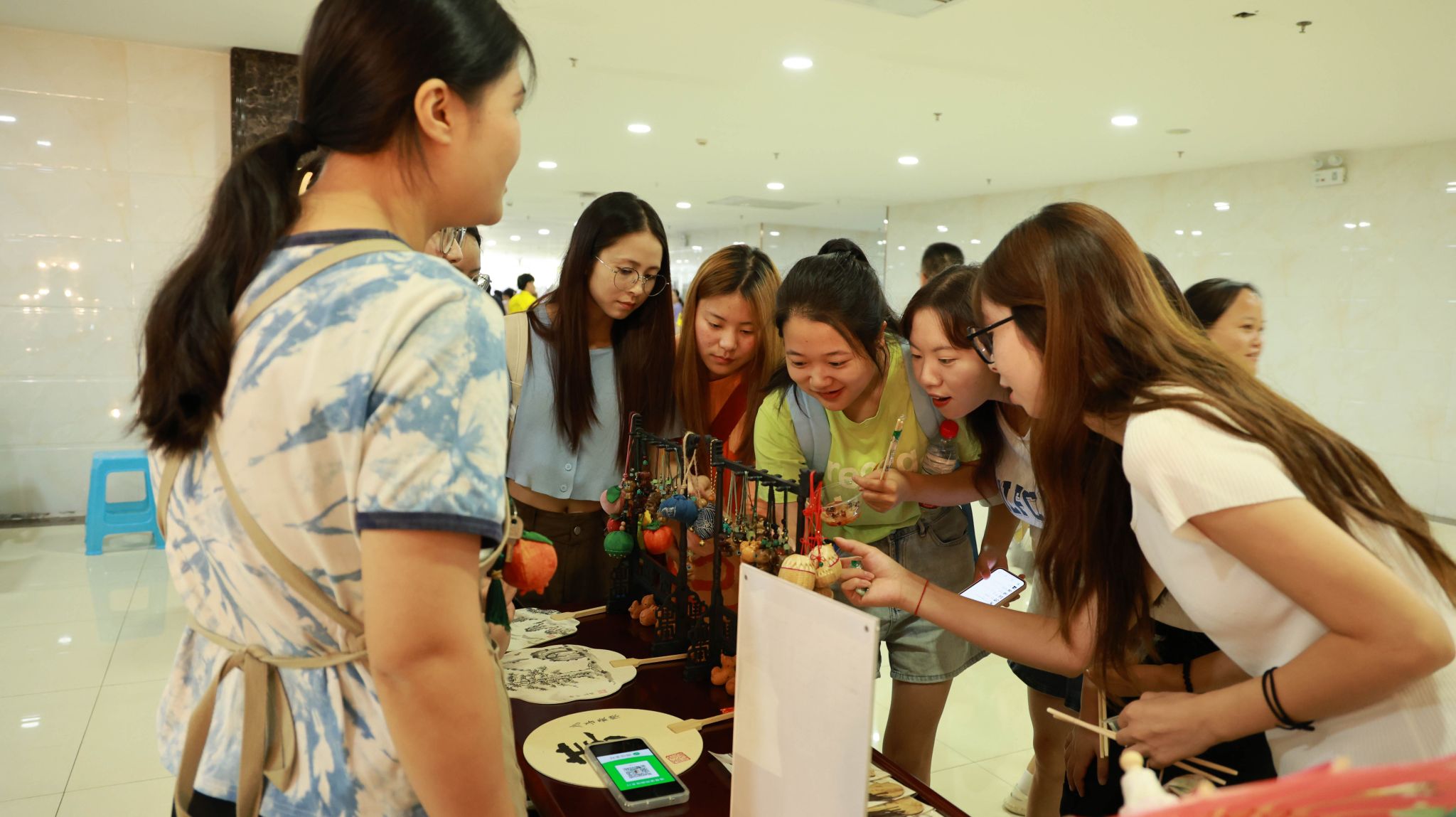 活动现场还设置了遵义多家非遗文化体验和黔货出山项目,与会国际青年代表纷纷前去参观体验。