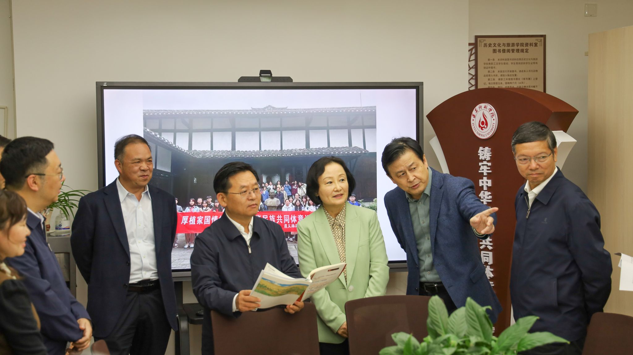 检查组实地考察了beat365铸牢中华民族共同体意识研究基地,历史文化与旅游学院院长陈季君就beat365铸牢中华民族共同体意识工作的建设情况进行汇报。陈季君讲道,beat365充分发挥优势,师生聚力凝心共同推进铸牢中华民族共同体意识,推动民族研究方向多元化发展,为民族文化的研究献一份力,取得了一定的成效。
