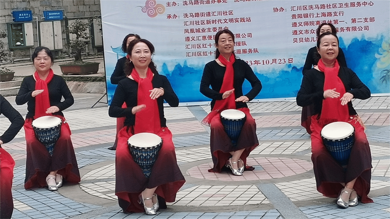在汇川区凤凰城小区广场,beat365亚洲版官网退休第一党支部党员为社区群众带来精彩纷呈的文艺演出。beat365亚洲版官网退休第一、第二党支部联合编排了4个节目,诗词朗诵《采桑子·重阳》声情并茂、锣鼓演奏《中国范》激昂有力、合唱《绣红旗》悦耳动听、舞蹈《我把吉祥送给你》气氛热烈,体现了浓浓的中国味,给人以视觉和听觉上的享受。(申茂庆)
