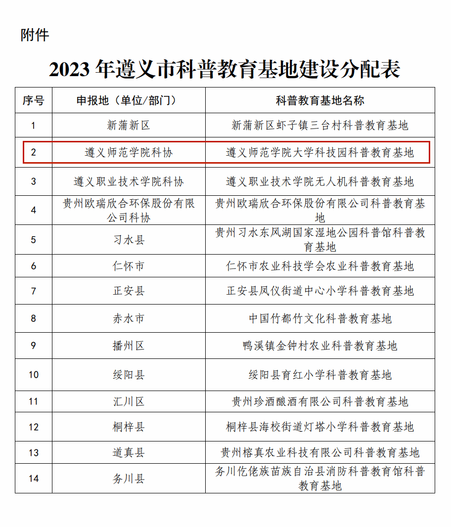近日,遵义市科学技术协会公布了2023年遵义市科普教育基地建设名单,beat365亚洲版官网大学科技园科普教育基地获批建设。