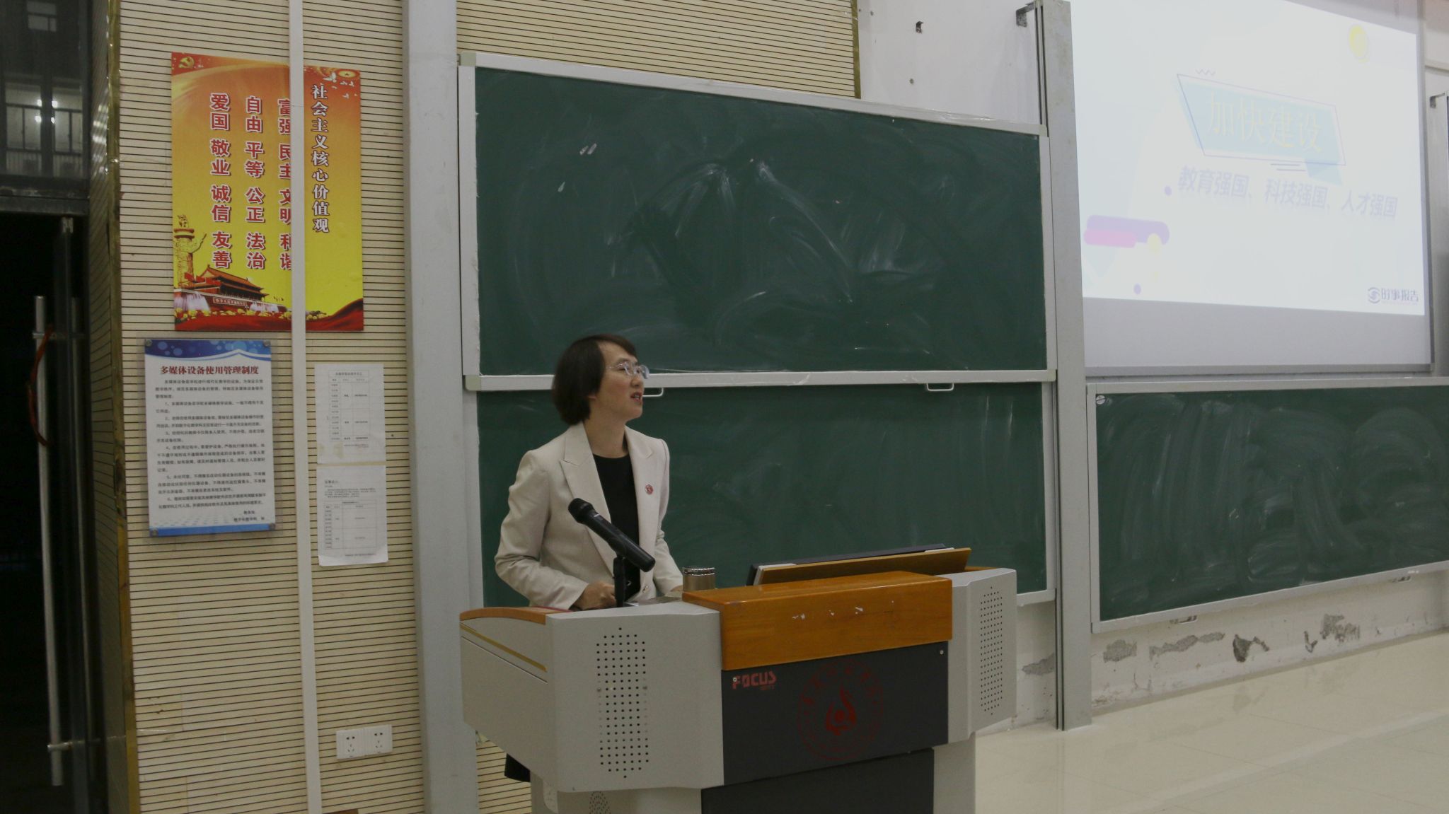 11月6日晚,党委委员、副校长江山在执毓楼108教室给2023级翻译本科班(1)(2)班、计算机(2)(3)班上了一堂题为《加快建设教育强国、科技强国、人才强国》的思政课。