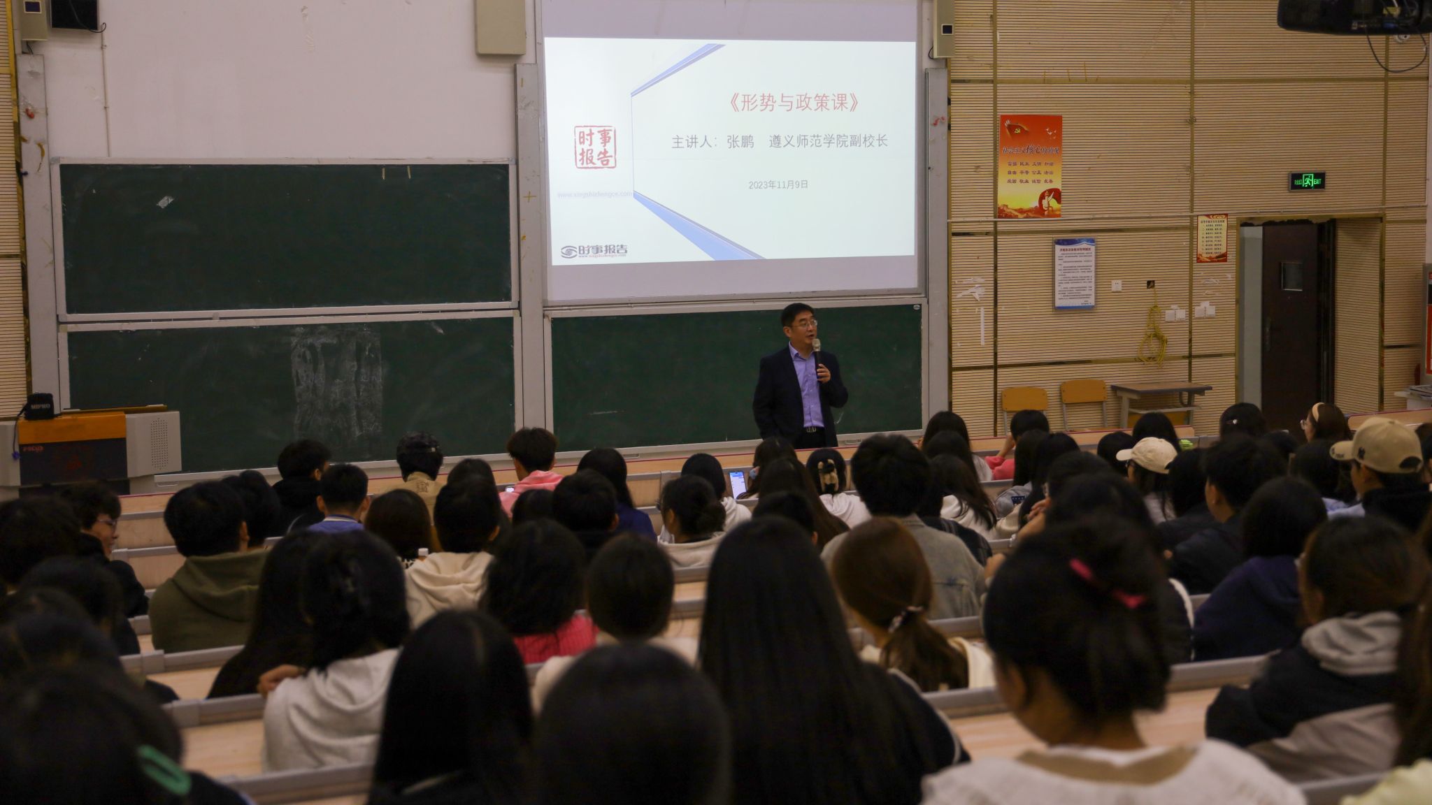 11月9日晚,学校副校长张鹏在执文楼119教室上了一堂题为《加快建设教育强国、科技强国、人才强国》的思政课,2023级英语本科(1)(2)班、汉教本科班、音乐本科(1)(2)班的200余名学生到场聆听。