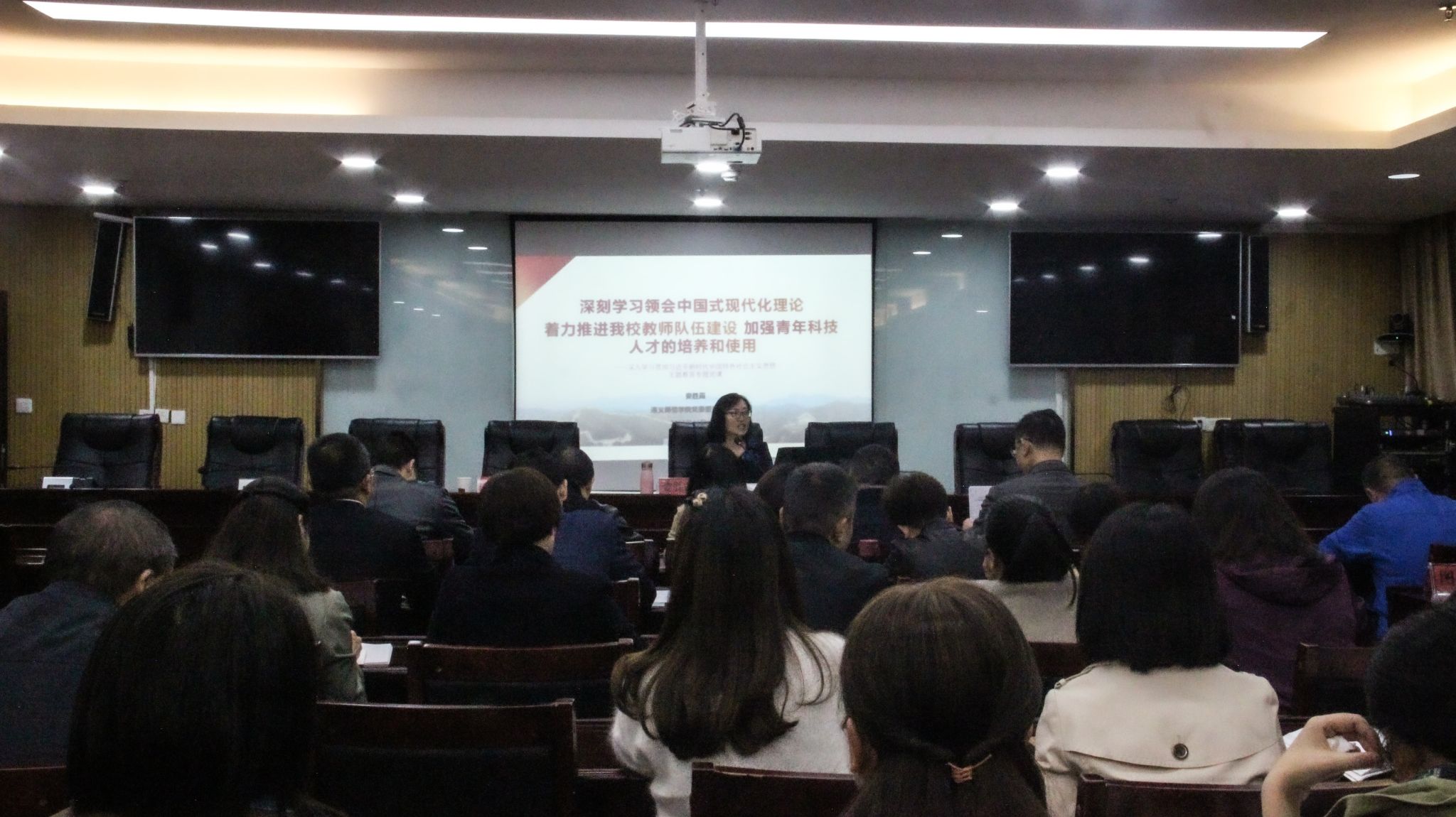 11月10日,学校党委委员、副校长娄胜霞在行政楼214会议室上了一堂题为《深刻学习领会中国式现代化理论 着力推进beat365教师队伍建设 加强青年科技人才的培养和使用》的党课。