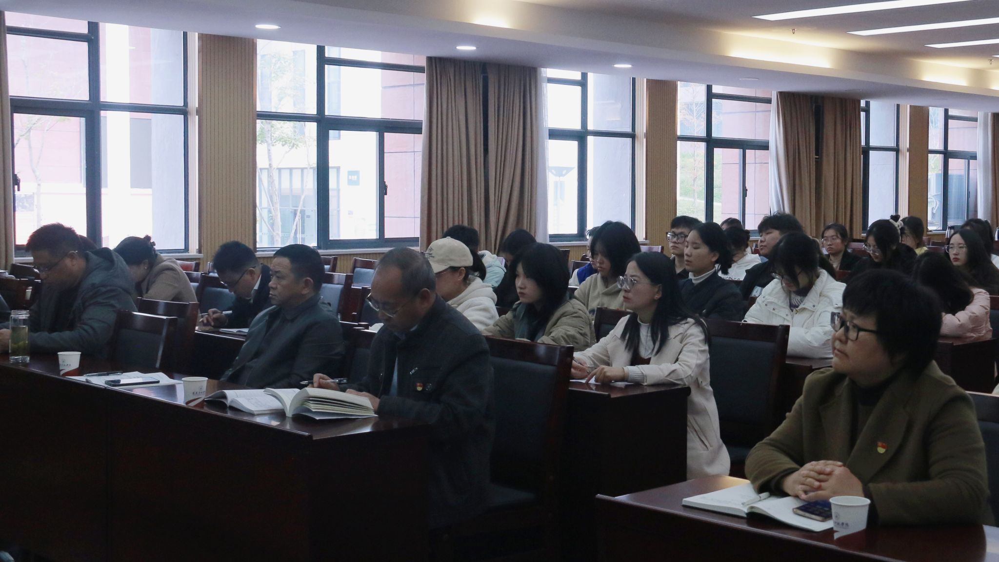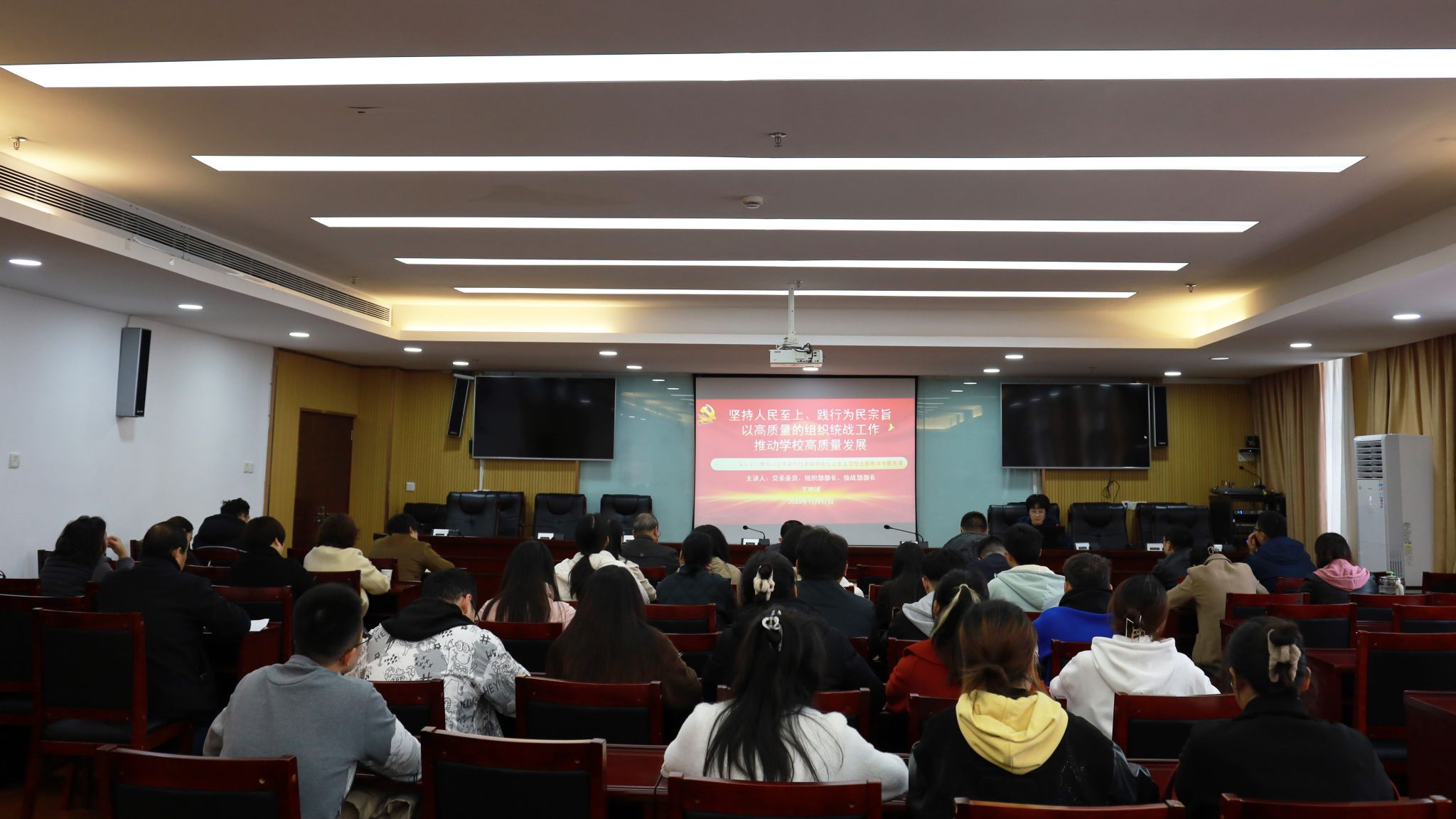 11月17日下午,学校党委委员、组织部部长、统战部部长王明述,在行政楼214会议室上了一堂《坚持人民至上,践行为民宗旨,以高质量的组织统战工作推进学校高质量发展》的党课。
