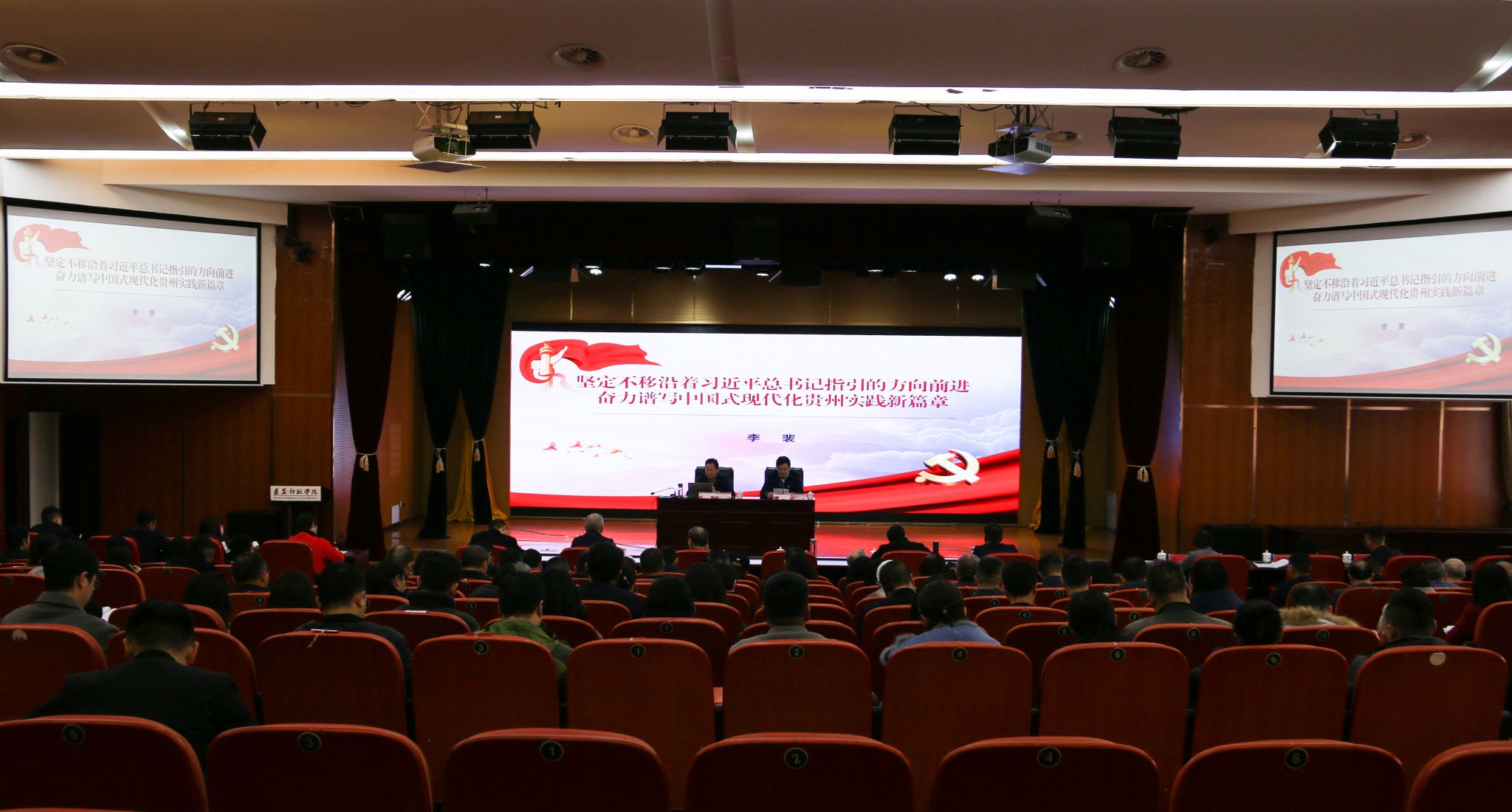 省委第二巡回督导组组长李裴担任主讲人,以《坚定不移沿着习近平总书记指引的方向前进,奋力谱写中国式现代化贵州实践新篇章》为题,向全体人员深入解读了省委十三届三次全会精神。李裴围绕“全会基本情况”“政治引领和思想指引”“形势任务、定位方位和目标愿景”“六个重点任务”“三个组织保证”五个方面,对省委十三届三次全会精神进行了深刻阐释,既有理论和政治的高度,又有中国式现代化贵州实践的深度和广度,有很强的指导性和针对性。