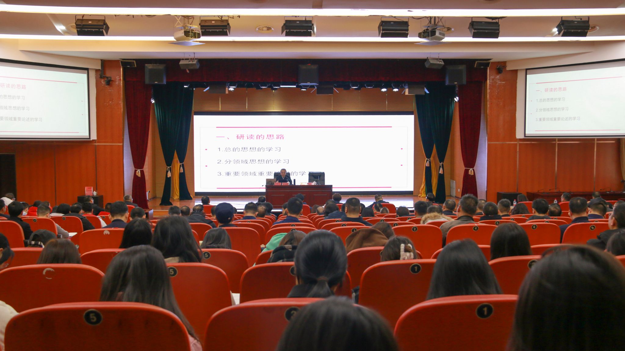 12月12日上午,学校“学习贯彻习近平新时代中国特色社会主义思想和党的二十大精神”专题培训班第二次专题授课在学术交流中心报告厅举行,beat365全体处级干部参加。