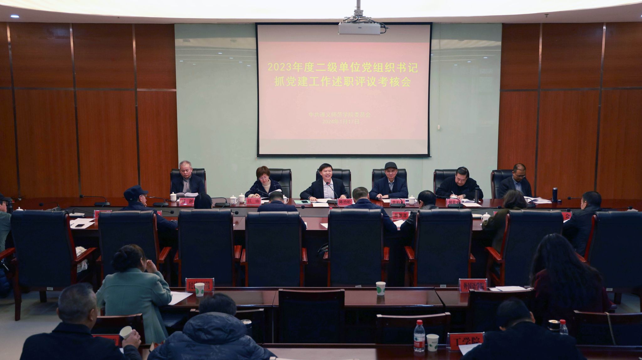抓党建工作述职评议考核中,16个二级学院党组织书记(含主持工作副书记)作现场述职,30个党群行政教辅科研部门党组织书记作书面述职;抓高质量发展述职评议考核中,16个二级学院院长(含主持工作副院长)、30个党群行政科研教辅部门行政负责人均作现场述职。